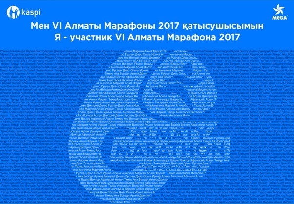 The press wall with the names of participants of VI Almaty Marathon will be presented in Mega Alma-Ata shopping mall from February 1st till March 31 2017. If you want your name presented on the press wall, please go through the Almaty Marathon registration form. The payment of an entry fee is obligatory till January 31st.