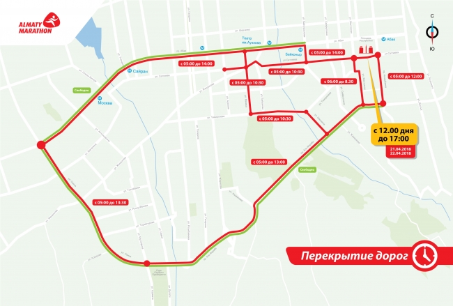 Road closure table during the Almaty Marathon 2018 (21-22.04.2018)