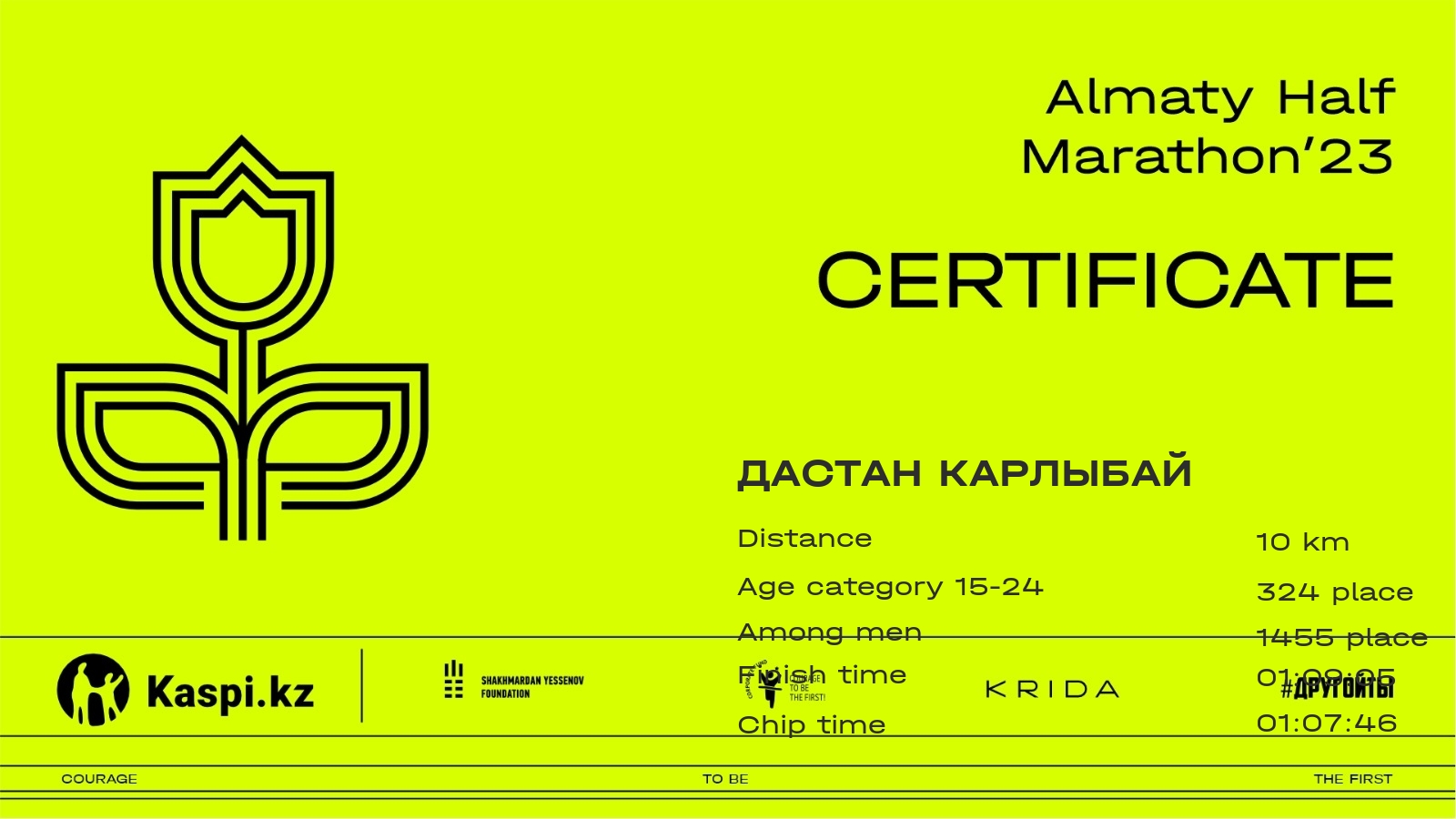 | 2158 | Дастан Карлыбай | ![]() | Алматы | 6518 | 00:46:52.38 | 01:09:05.93 | 01:07:46.05 | Download |
