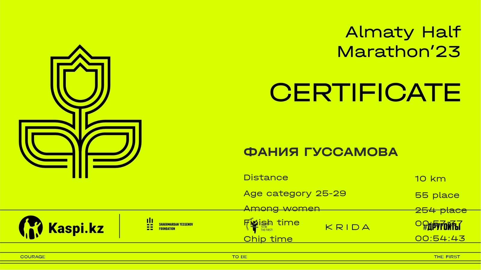 | 3163 | Фаина Крокошева | ![]() | Караганда | 4552 | 00:57:09.67 | 01:27:06.35 | 01:25:51.30 | Download |