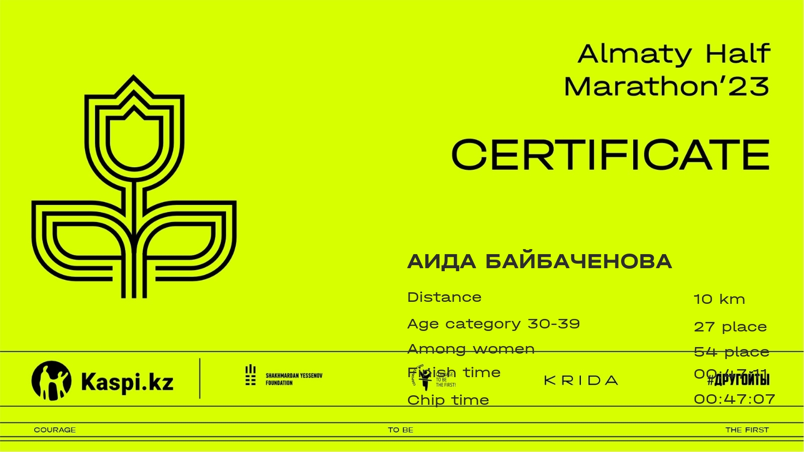 | 361 | Bakyt Yerdenbekova | ![]() | Атырау | 3397 | 00:32:02.32 | 00:47:07.49 | 00:46:57.28 | Download |