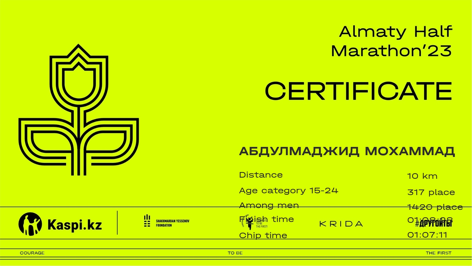 | 2094 | Абдулмаджид Мохаммад | ![]() | Алматы | 5521 | 00:45:50.37 | 01:08:28.61 | 01:07:11.57 | Download |