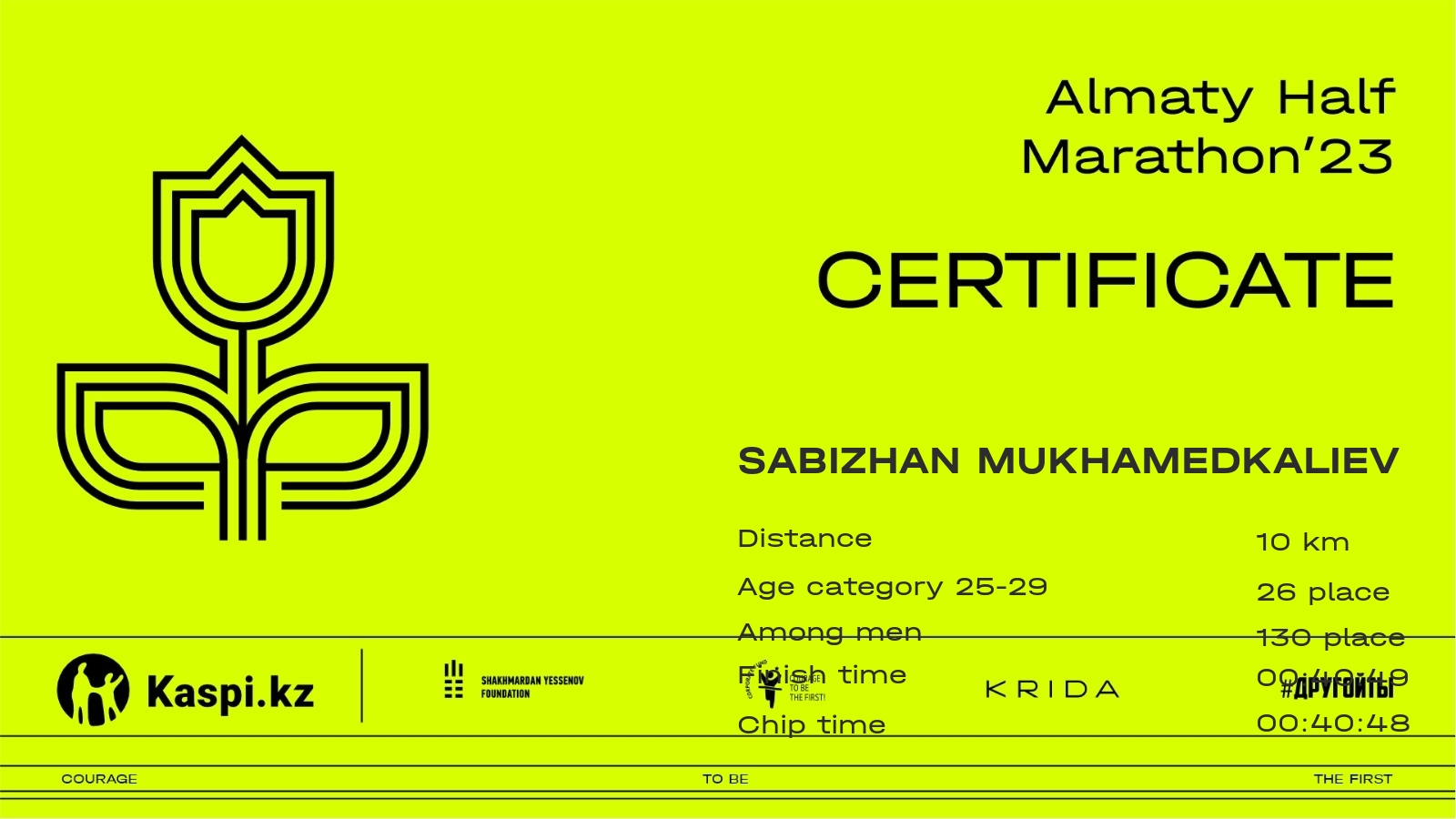 | 121 | Эмиль Кожонов | ![]() | Алматы | 5587 | 00:26:34.00 | 00:39:53.58 | 00:39:41.36 | Download |