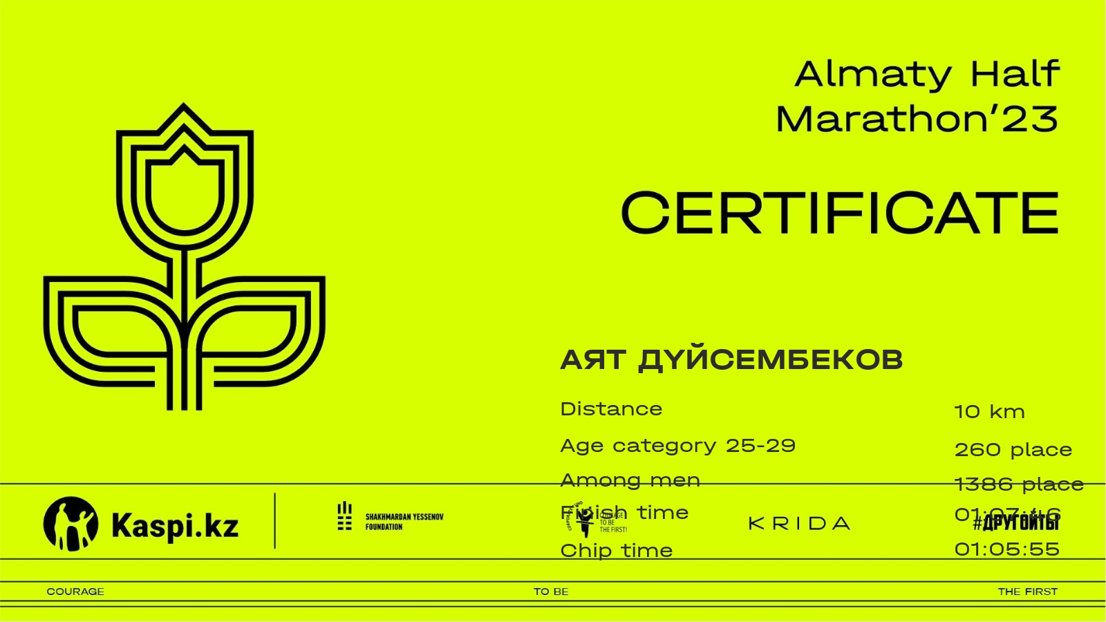 | 3352 | Мадина Шуленова | ![]() | Алматы | 5105 | 01:05:23.46 | 01:34:57.48 | 01:32:11.44 | Download |