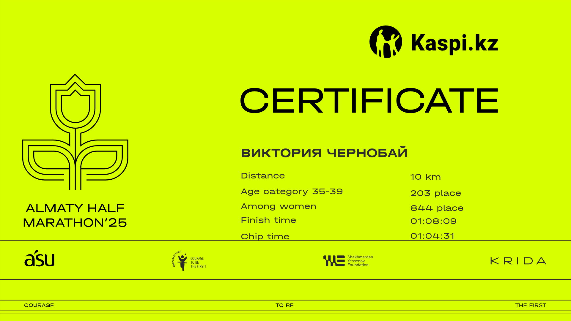 | 4867 | Aliya Dauytova | ![]() | Алматы | 6635 | 01:04:07 | 01:38:52 | 01:37:30 | Download |