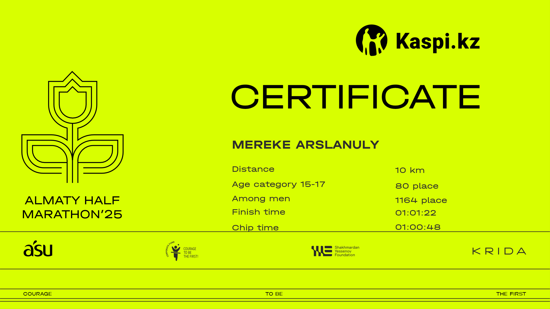 | 5061 | Miras Abdukhan | ![]() | Алматы | 7997 | 01:10:01 | 01:50:29 | 01:46:52 | Download |