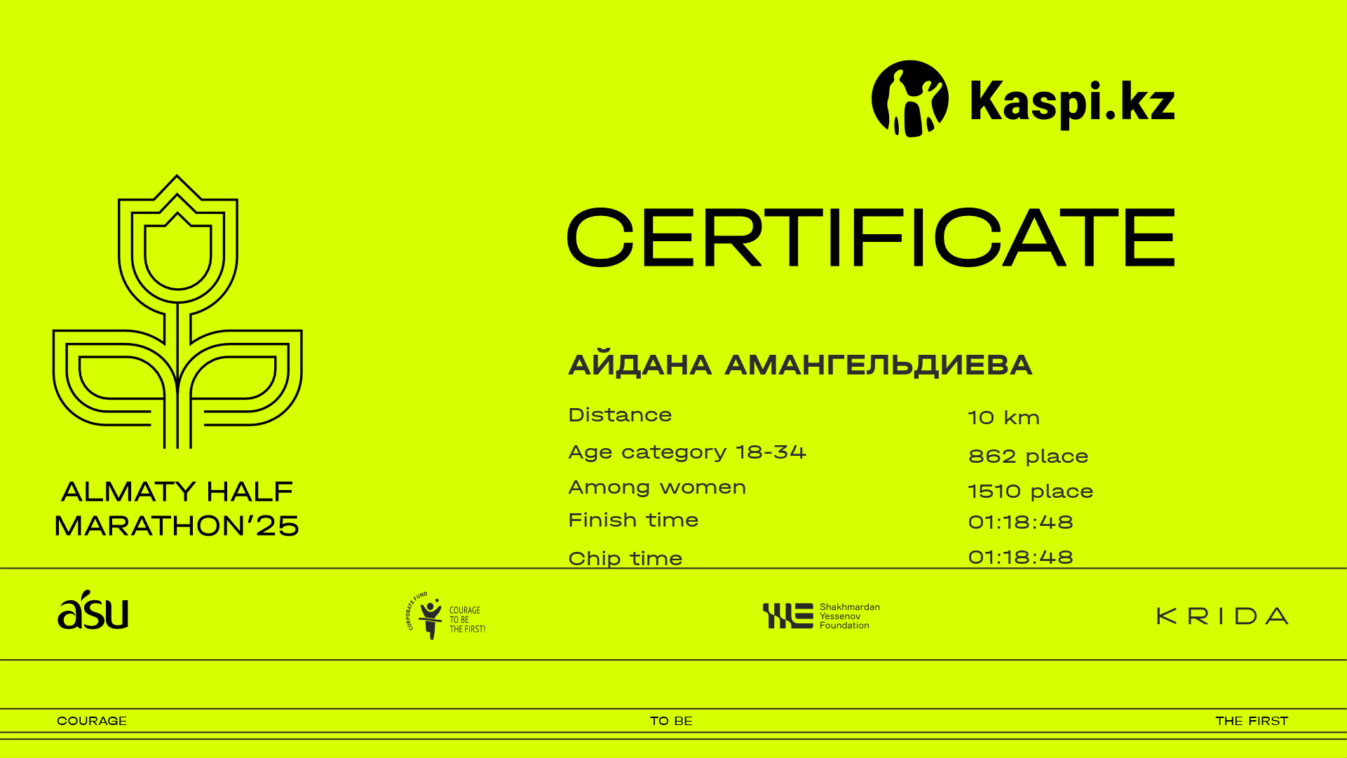 | 4301 | Dilnaz Tolegen | ![]() | Петропавловск | 6074 | 00:56:38 | 01:26:18 | 01:22:44 | Download |