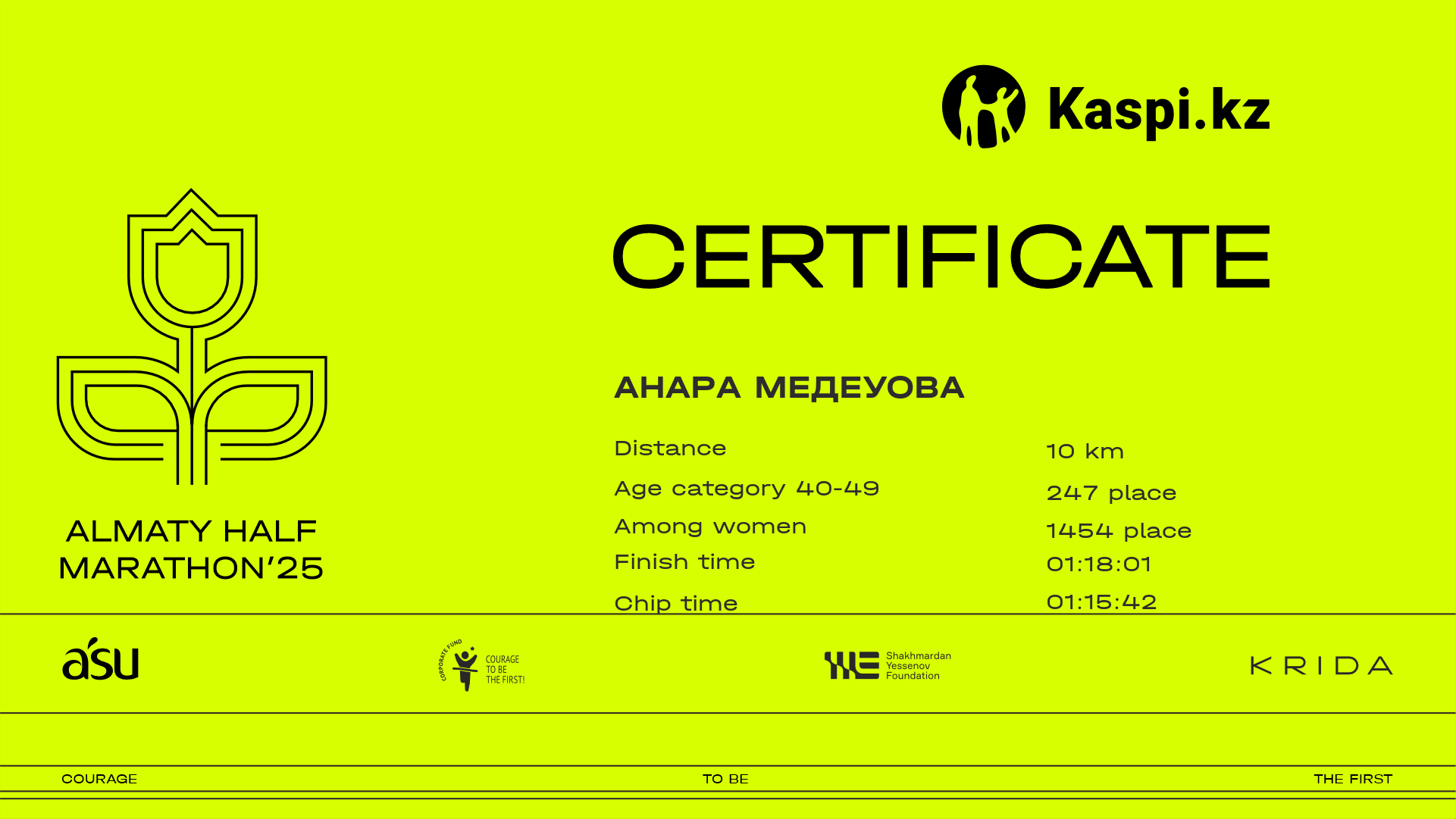 | 303 | Aigerim Omarova | ![]() | Актобе | 4148 | 00:30:49 | 00:46:16 | 00:46:03 | Download |