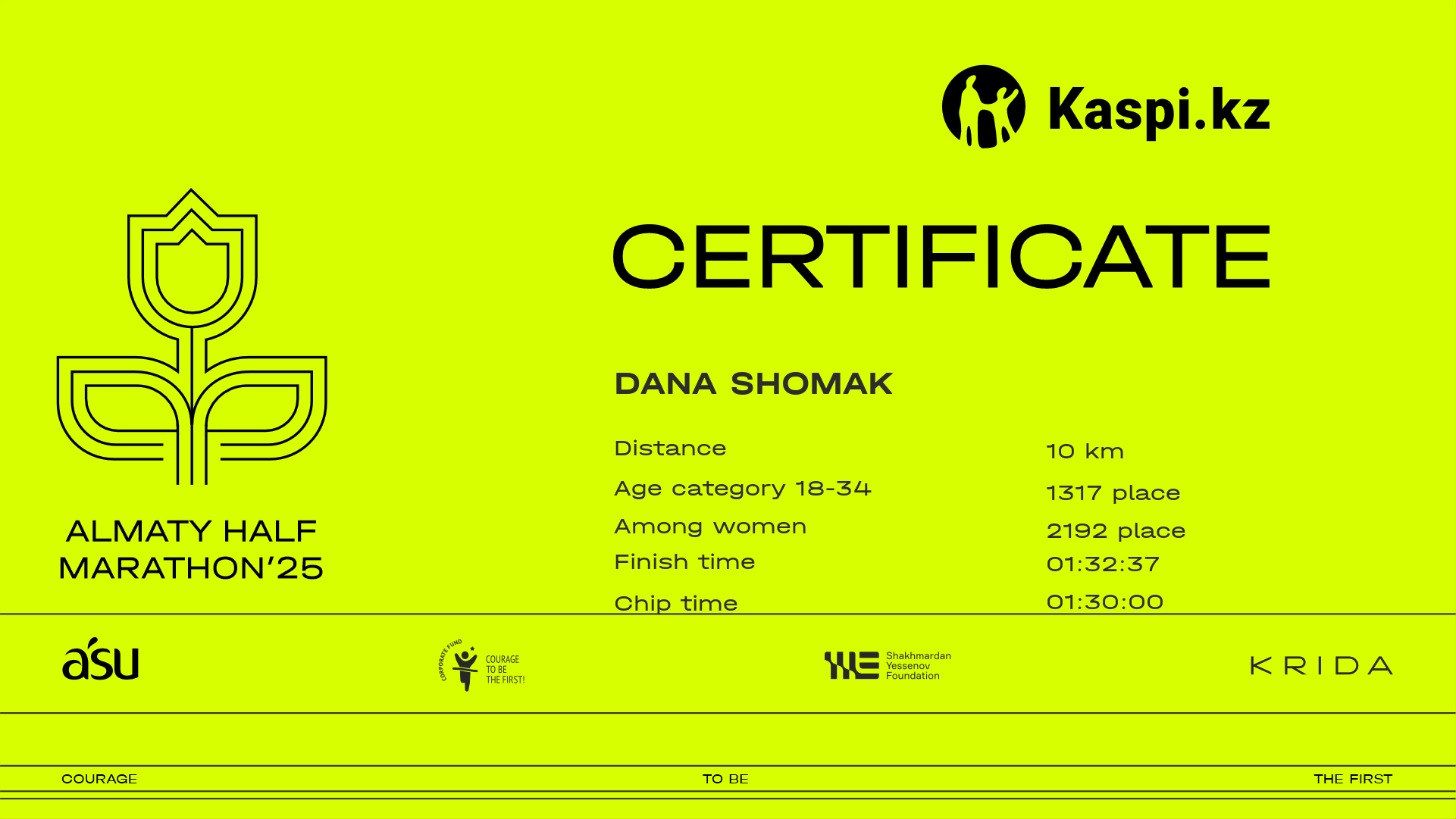 | 4632 | Dana Shomak | ![]() | Алматы | 5626 | 01:04:12 | 01:32:37 | 01:30:00 | Download |