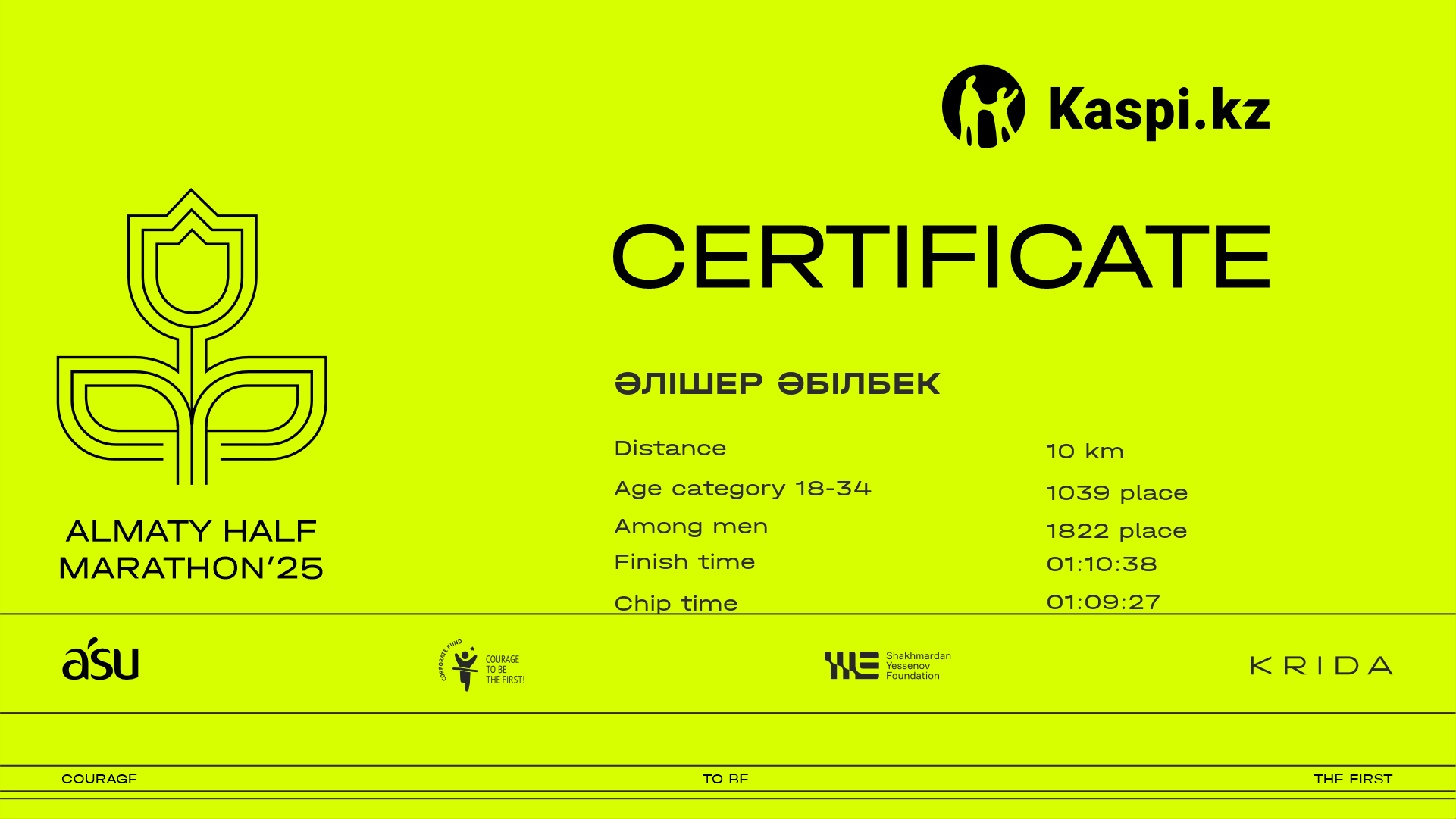 | 2820 | Әлішер Әбілбек | ![]() | Алматы | 5707 | 00:46:09 | 01:10:38 | 01:09:27 | Download |