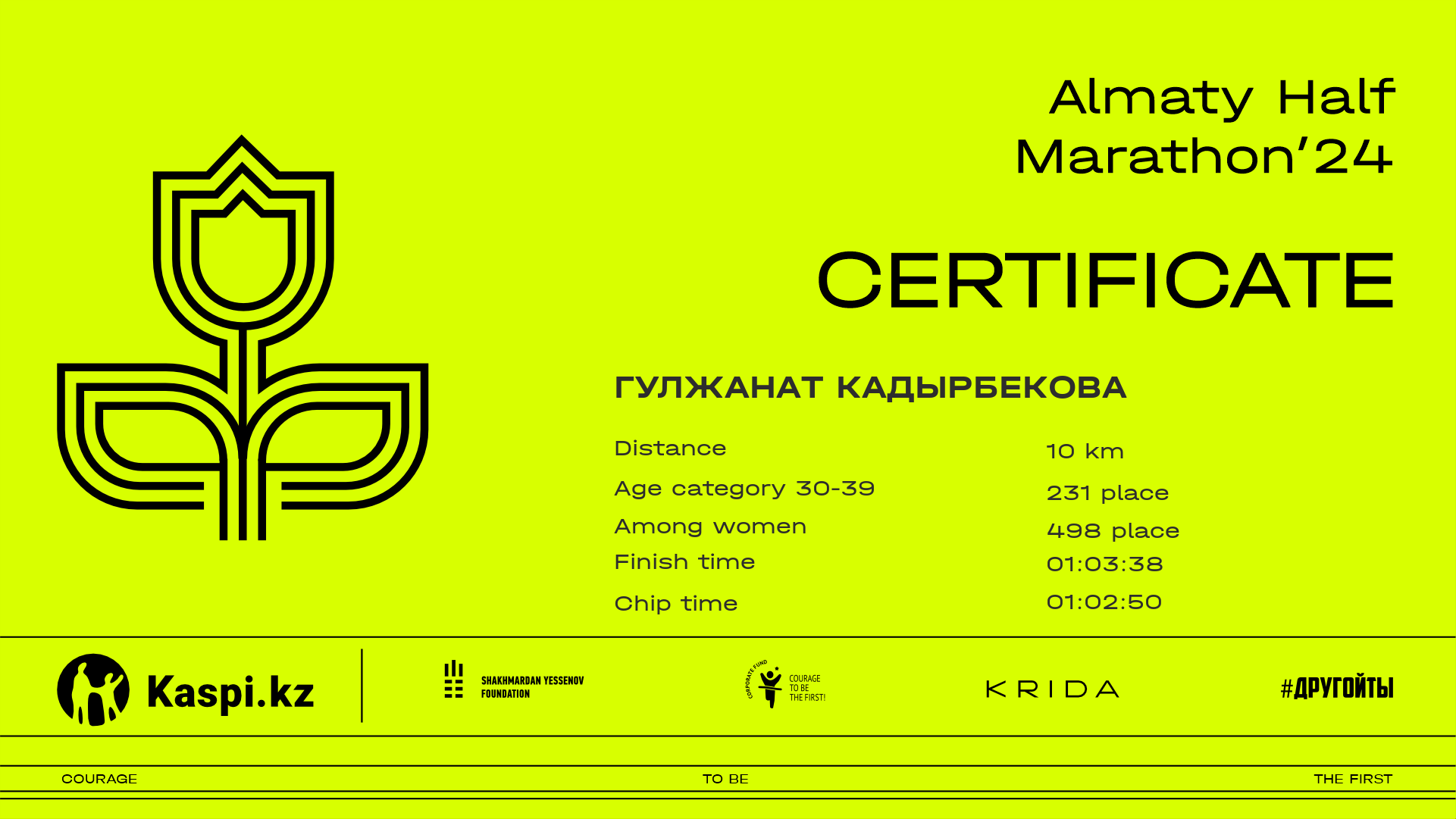 | 1751 | Гулжанат Кадырбекова | ![]() | Караганда | 4282 | 00:43:10 | 01:03:38 | 01:02:50 | Download |