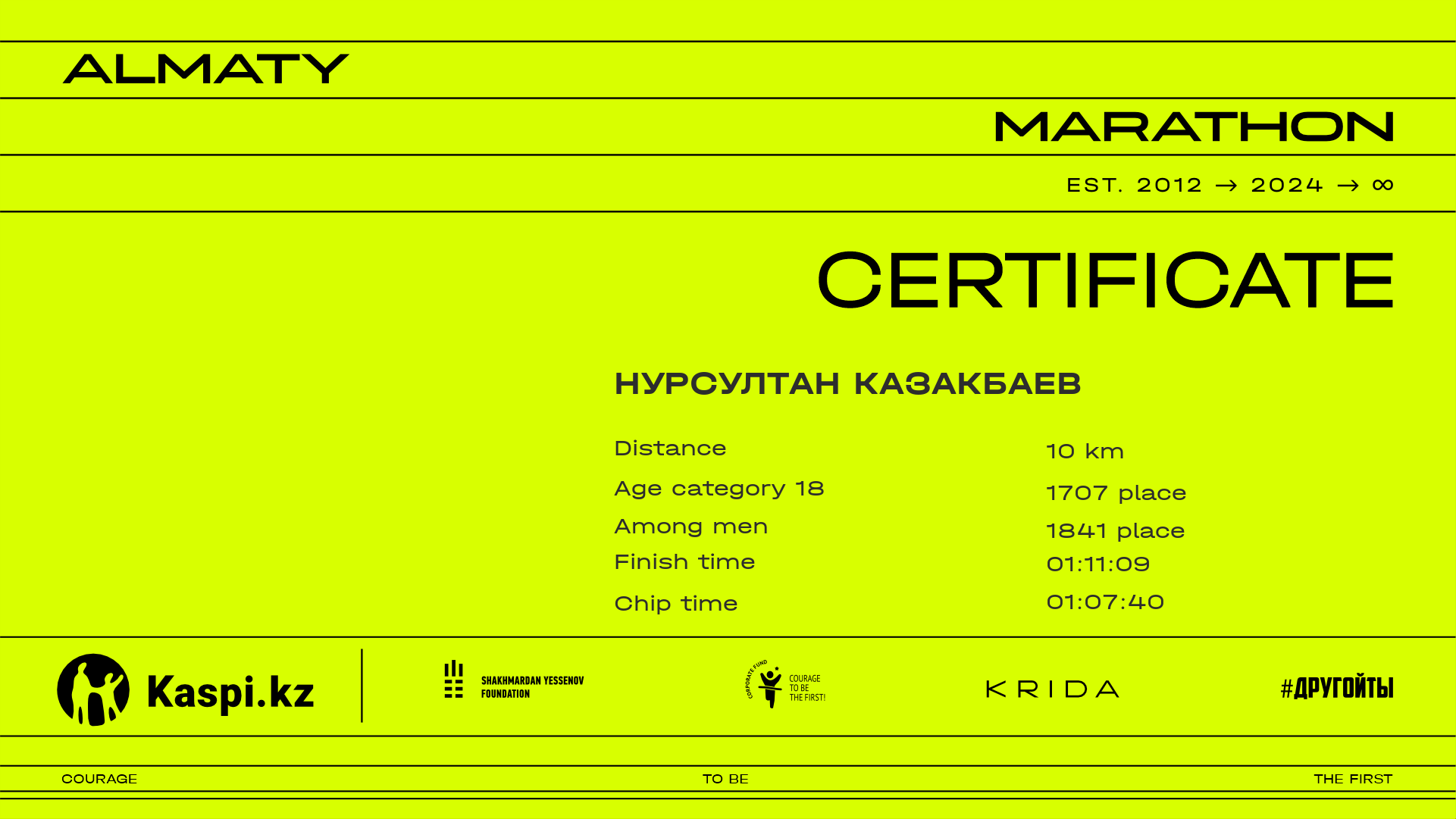| 2600 | Нурсултан Казакбаев | ![]() | Бишкек | 6150 | 00:53:49.21 | 01:11:09.92 | 01:07:40.45 | Download |