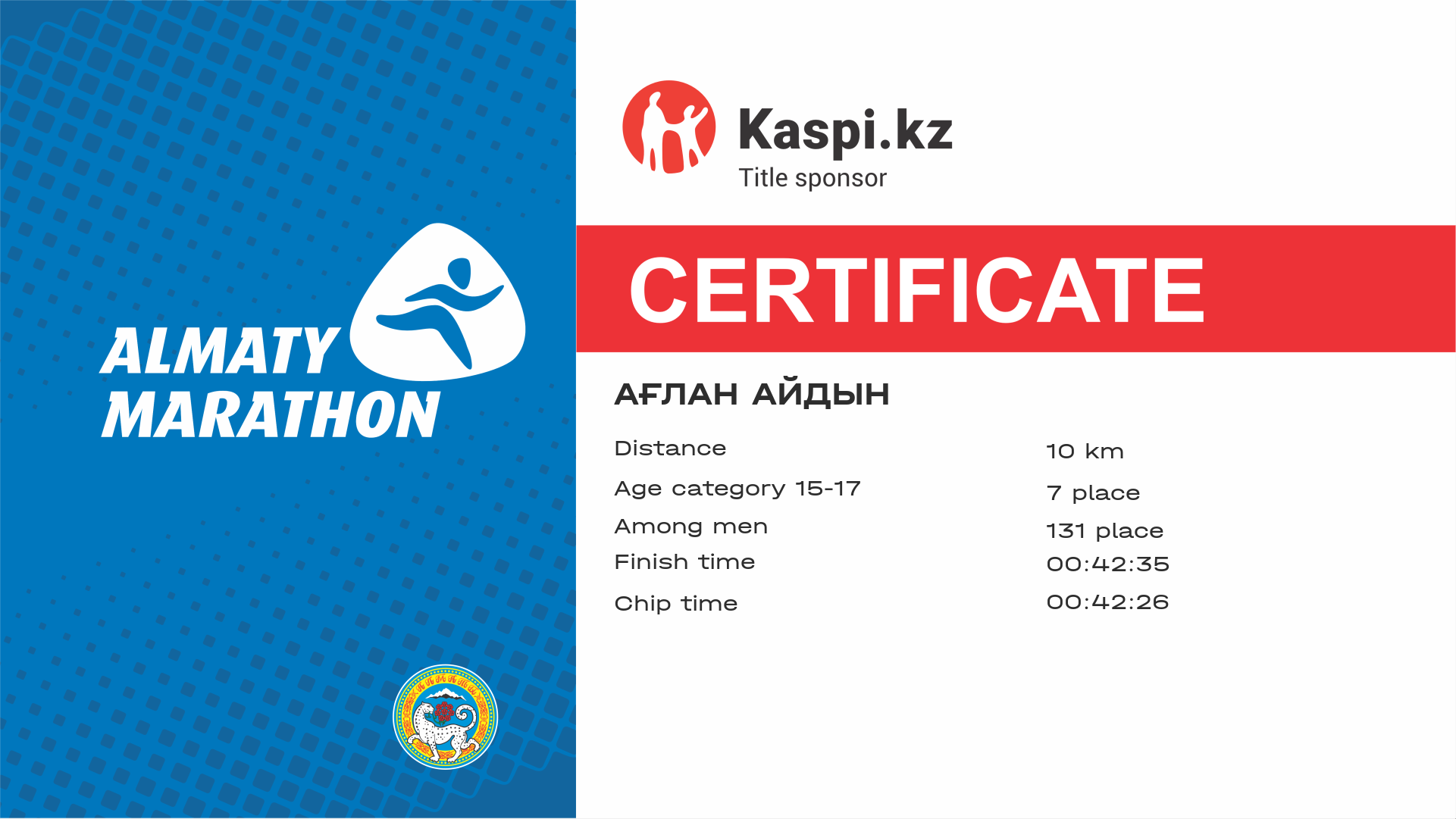 | 122 | Алишер Жексенбаев | ![]() | Алматы | 9027 | 00:30:56 | 00:42:05 | 00:41:37 | Download |