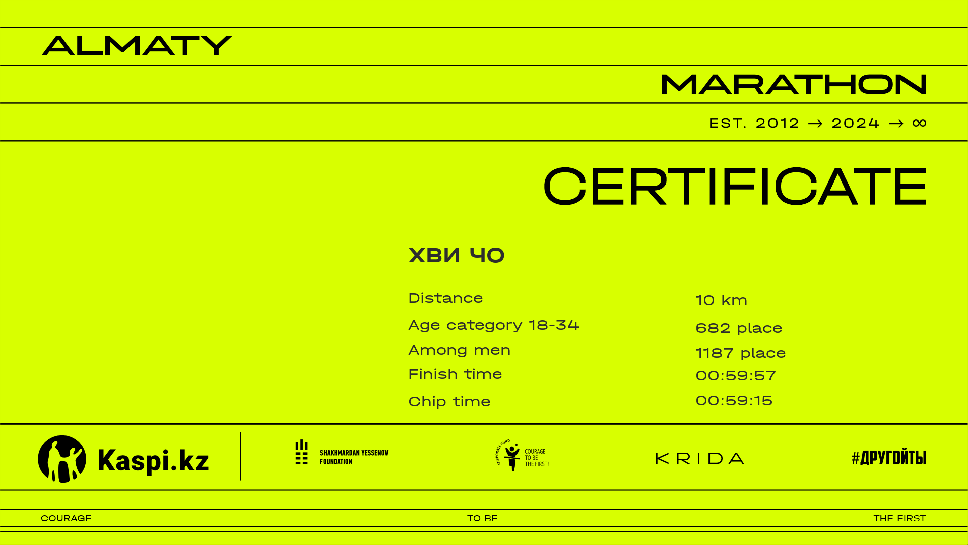 | 2476 | Хайыржан Чуканов | ![]() | Алматы | 12580 | 00:57:35.98 | 01:05:53.66 | 01:04:18.87 | Download |