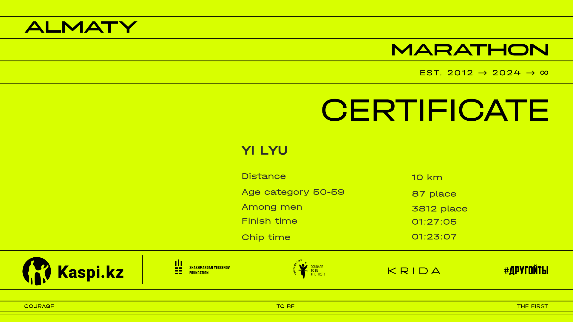 | 6642 | YUAN QINGQING | ![]() | Алматы | 15234 | 01:19:01.17 | 01:28:31.98 | 01:24:34.59 | Download |