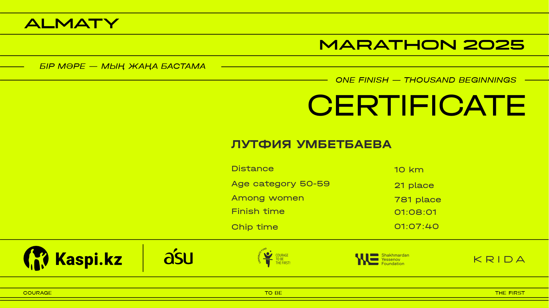| 4071 | Меруерт Шабден | ![]() | Алматы | 6187 | 01:06:22 | 01:17:27 | 01:15:48 | Download |