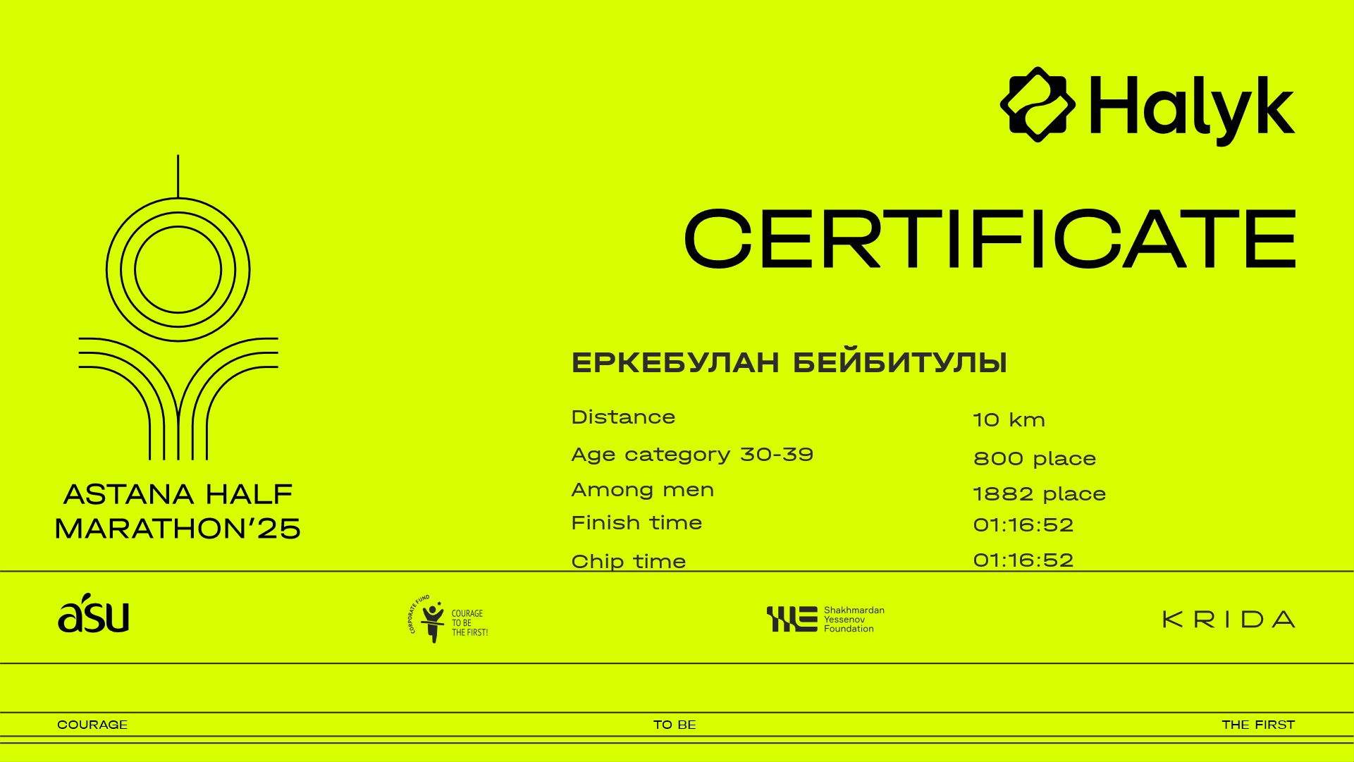 | 3343 | Данияр Сатыбалдинов | ![]() | Астана | 7419 | 00:49:41 | 01:26:12 | 01:24:01 | Download |