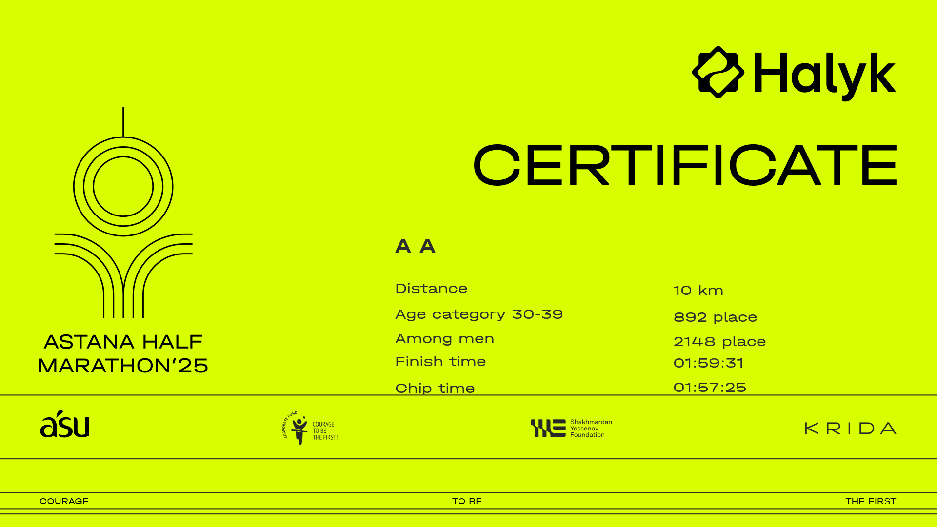 | 2568 | Ademi Rakhimkozhayeva | ![]() | Астана | 6335 | 00:42:58 | 01:13:36 | 01:13:11 | Download |