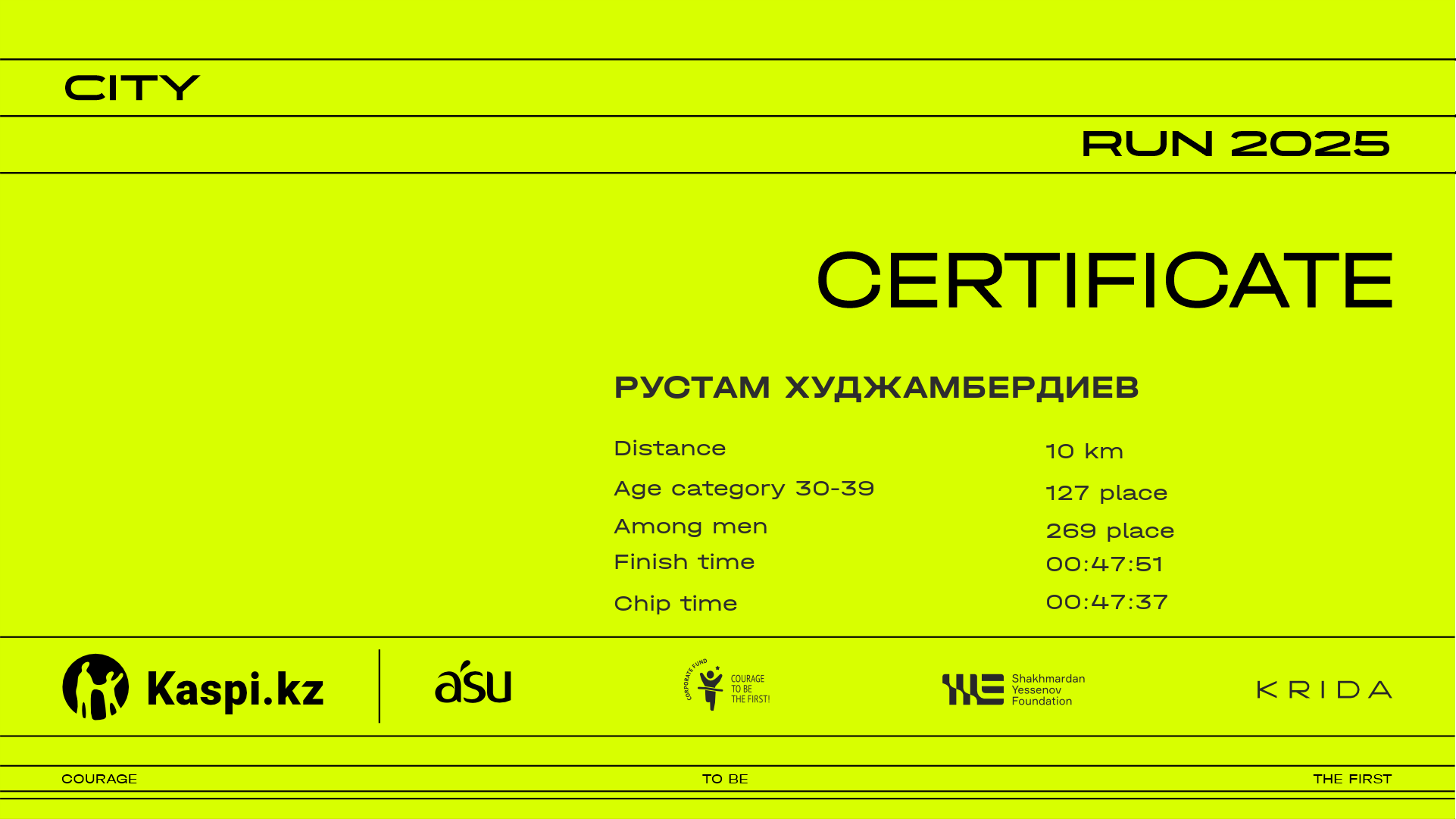 PlaceParticipantCitizenshipCityBib2.52 km4.37 km6.4 km8.43 km9.84 kmFinishChip timeCertificate