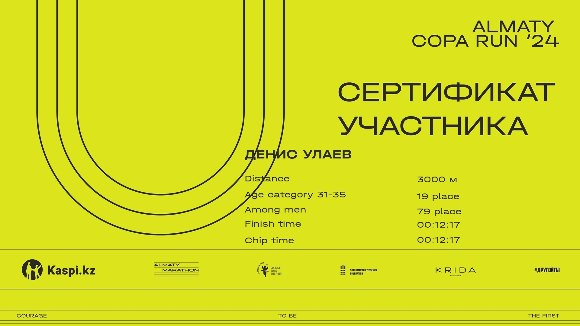 | 84 | Денис Улаев | ![]() | Алматы | 695 | 00:12:17.2 | Download |
