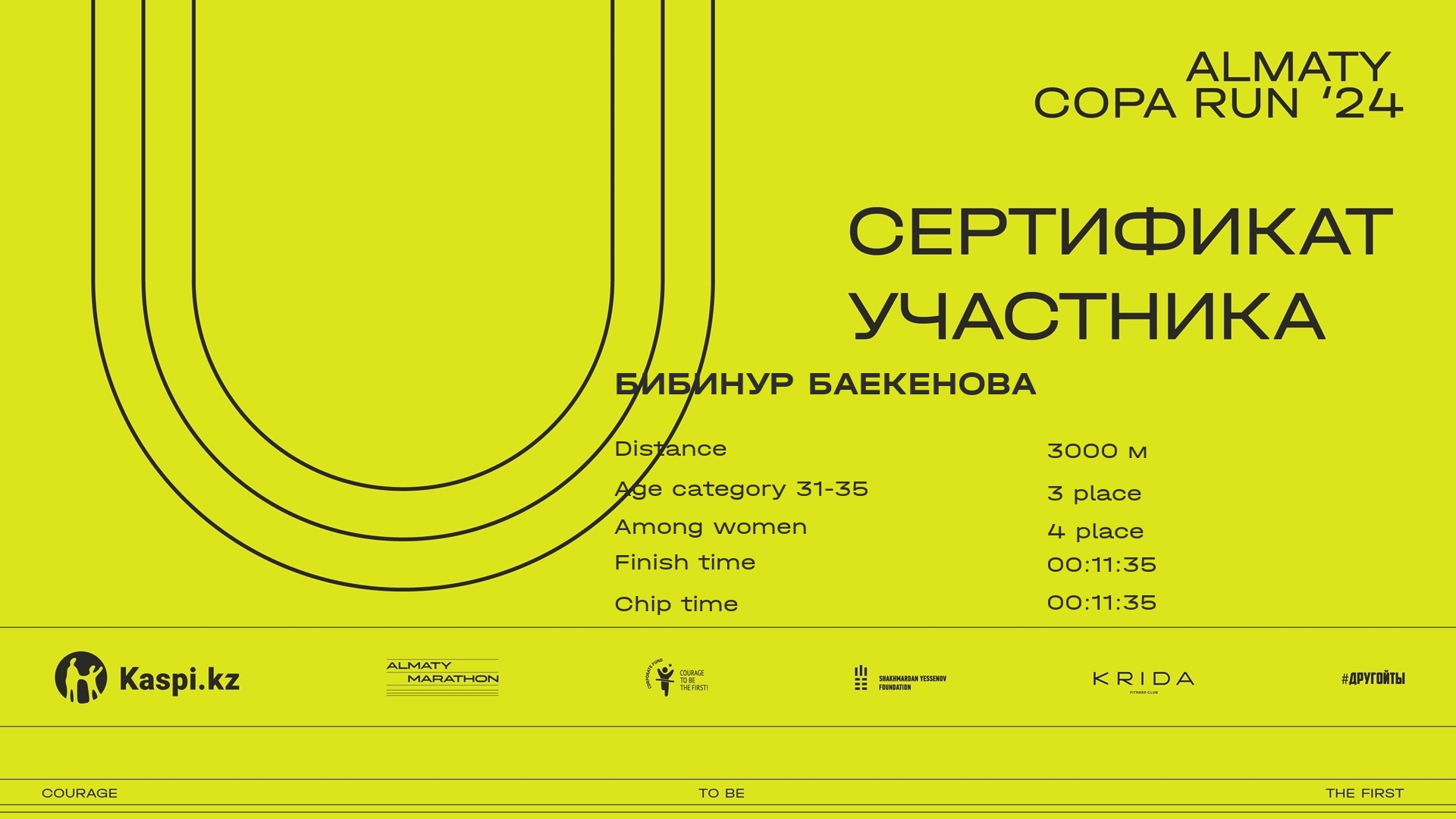 | Place | Participant | Citizenship | City | Bib | Finish | Certificate |