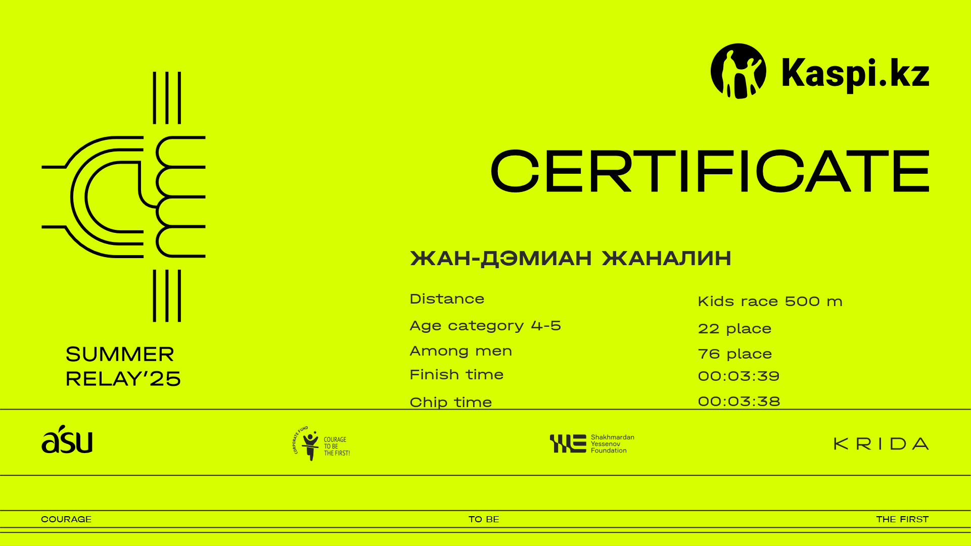 | 135 | Жан-Дэмиан Жаналин | ![]() | Алматы | 11 | 00:03:39.40 | 00:03:38.80 | Download |