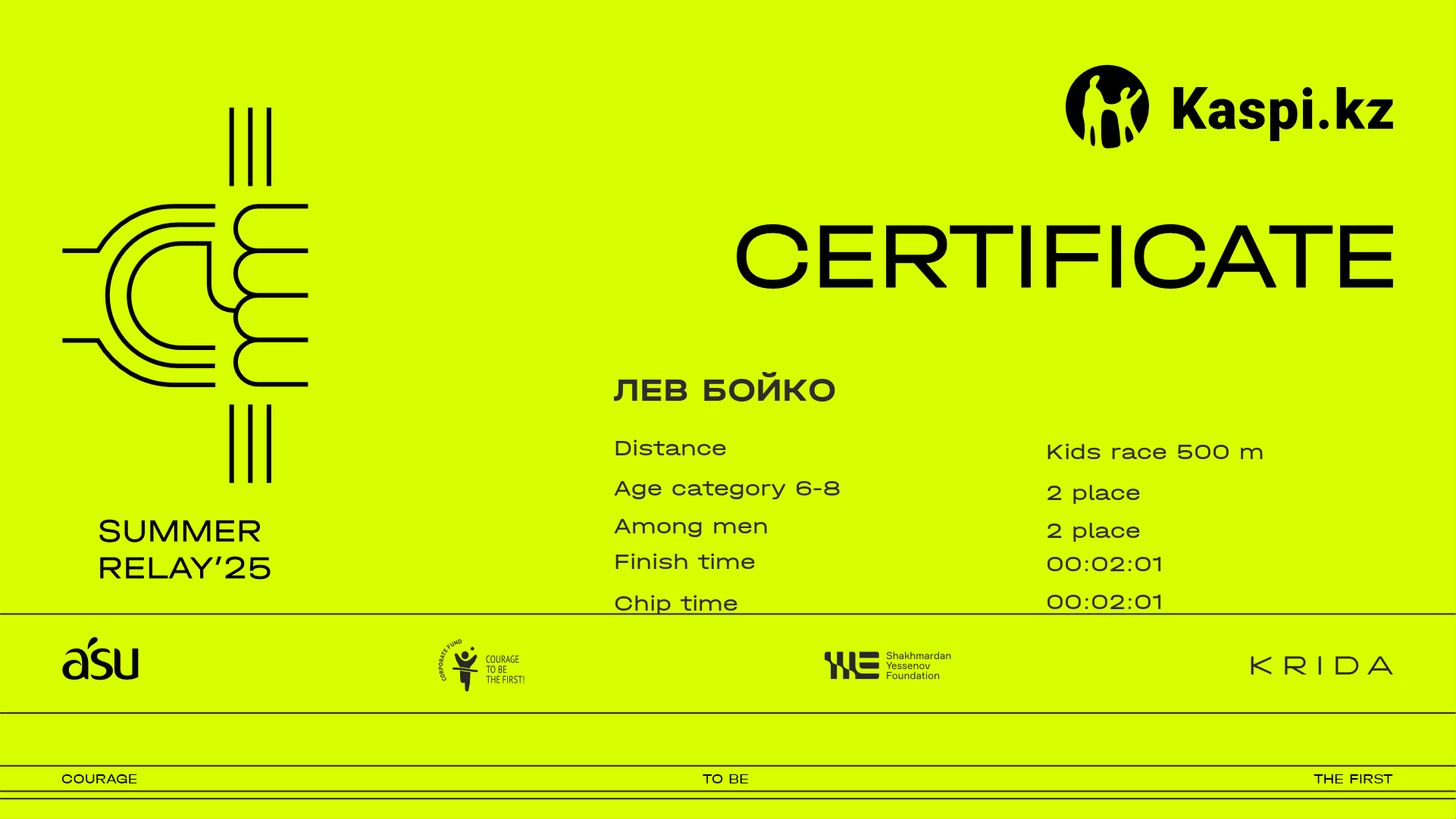 | 2 | Лев Бойко | ![]() | Алматы | 142 | 00:02:01.80 | 00:02:01.80 | Download |