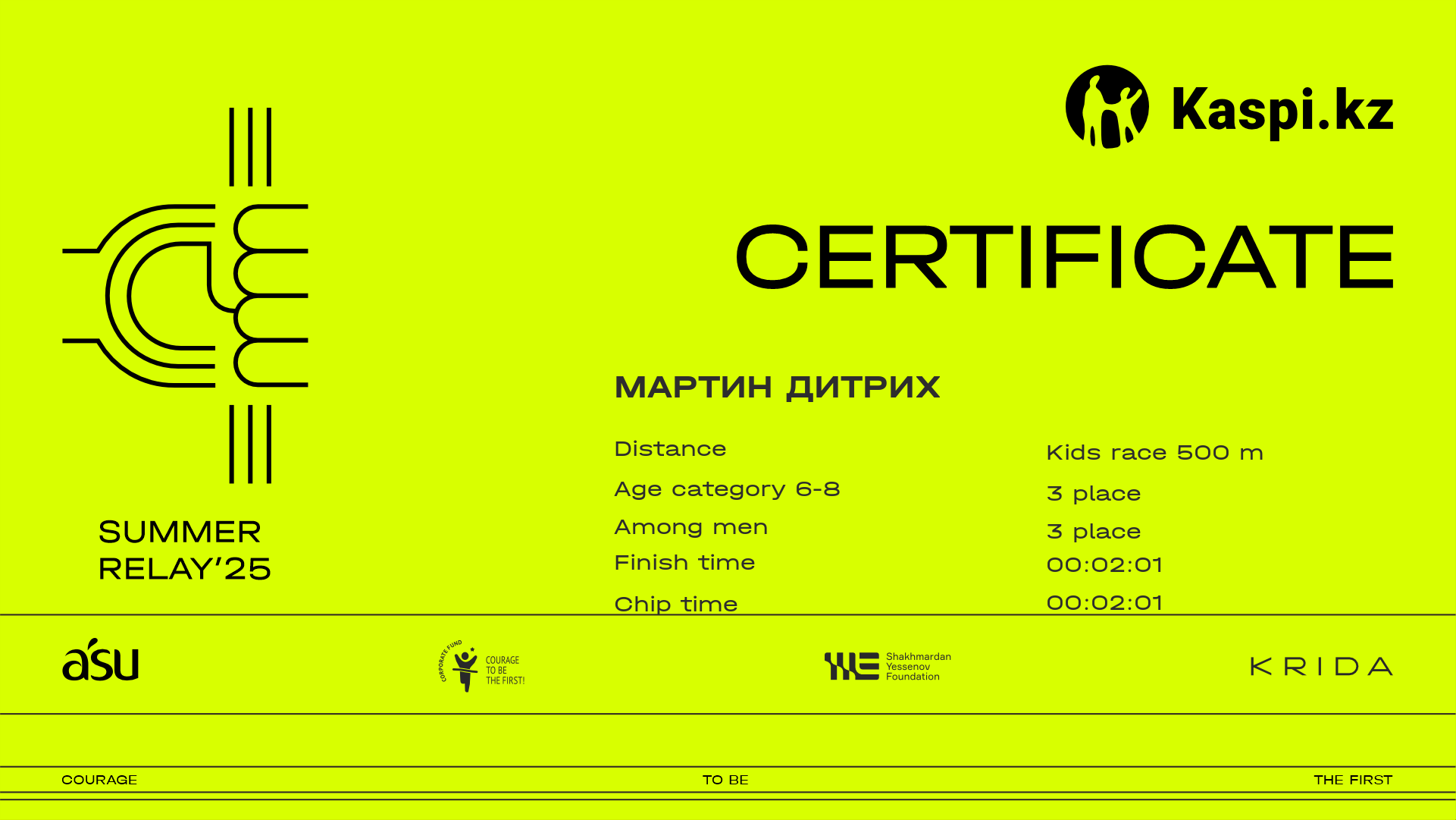 | 3 | Мартин Дитрих | ![]() | Алматы | 98 | 00:02:01.90 | 00:02:01.90 | Download |