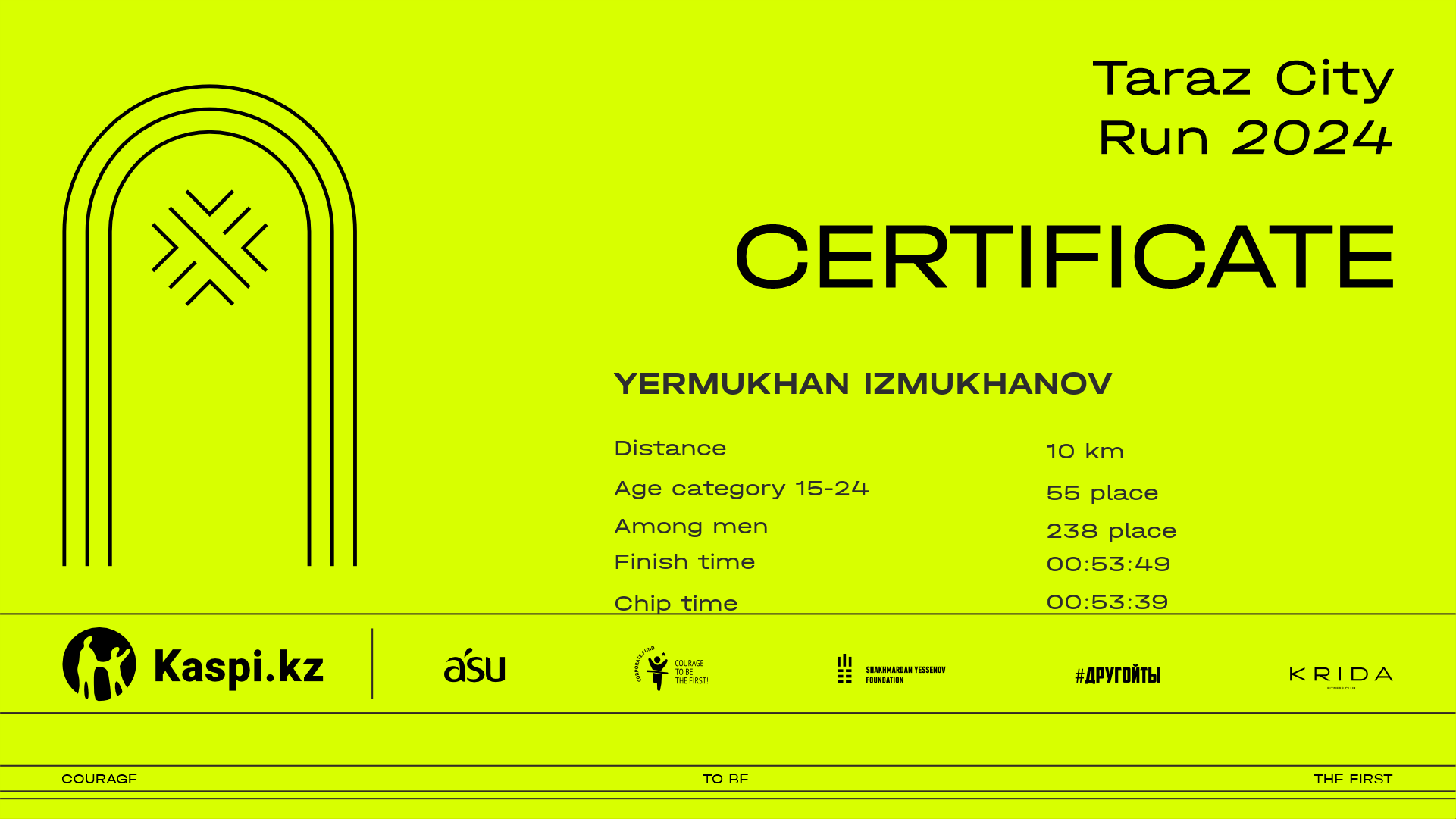 | 275 | Kazybek Uzakbayev | ![]() | Тараз | 23 | 00:11:44.50 | 00:25:39.90 | 00:39:56.80 | 00:53:55.80 | 00:53:48.00 | Download |