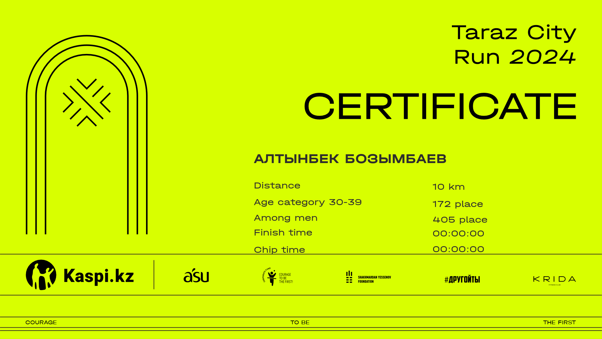 | 169 | Шериф Рамазанов | ![]() | Алматы | 400 | 00:11:50.40 | 00:23:33.70 | 00:35:26.10 | 00:47:33.80 | 00:47:25.30 | Download |