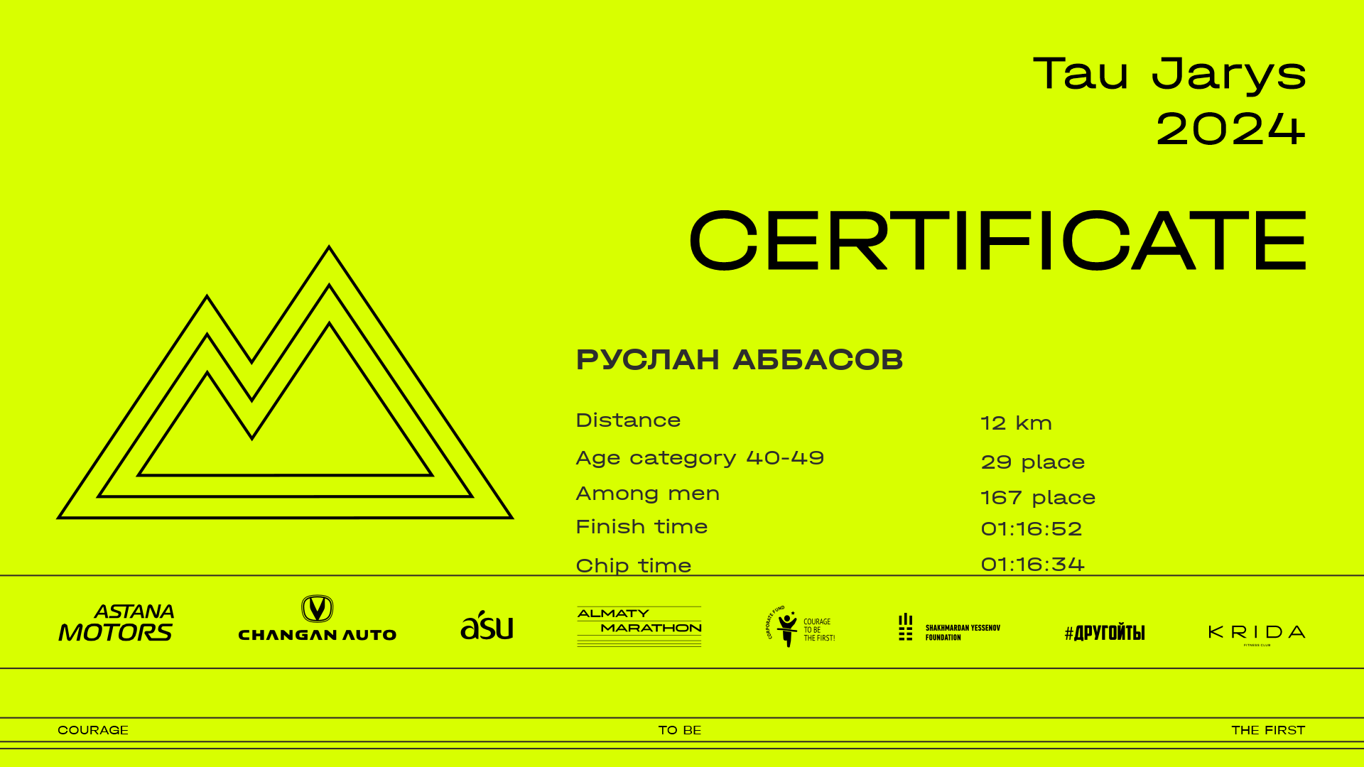 | 186 | Айткали Орынбасаров | ![]() | Алматы | 55 | 00:10:03.50 | 00:25:32.02 | 00:48:56.47 | 01:04:31.85 | 01:16:38.24 | 01:16:38.24 | Download |