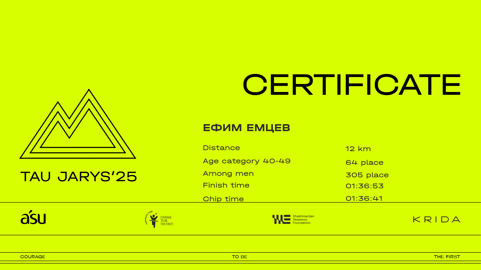 | 376 | OLEG KULIKOV | ![]() | Алматы | 563 | 00:11:19.70 | 00:30:06.60 | 00:39:31.30 | 01:01:38.10 | 01:20:23.00 | 01:29:37.40 | 01:37:57.10 | 01:37:52.10 | Download |