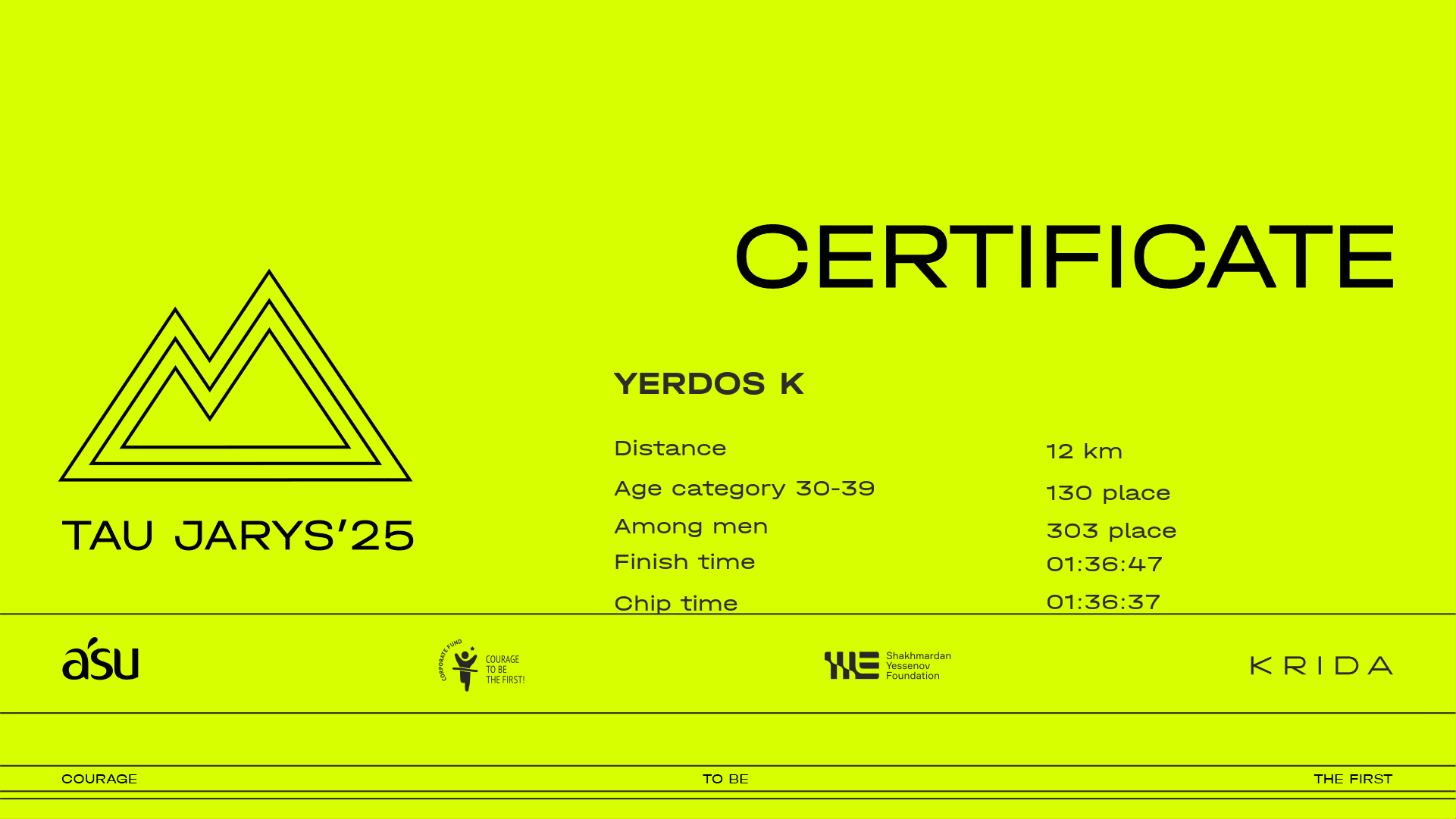 | 368 | Yerdos K | ![]() | Алматы | 305 | 00:11:13.90 | 00:28:49.10 | 00:37:51.40 | 00:58:52.90 | 01:18:50.00 | 01:28:34.60 | 01:36:47.10 | 01:36:37.20 | Download |
