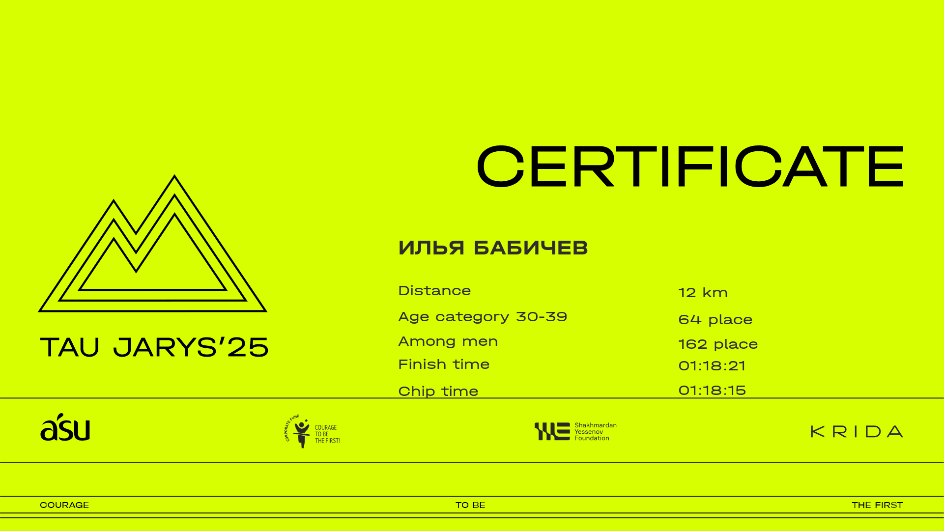 | 209 | Алексей Ковалёв | ![]() | Караганда | 207 | 00:10:53.10 | 00:26:59.40 | 00:35:13.70 | 00:52:28.60 | 01:07:01.60 | 01:14:34.90 | 01:21:09.70 | 01:20:57.10 | Download |