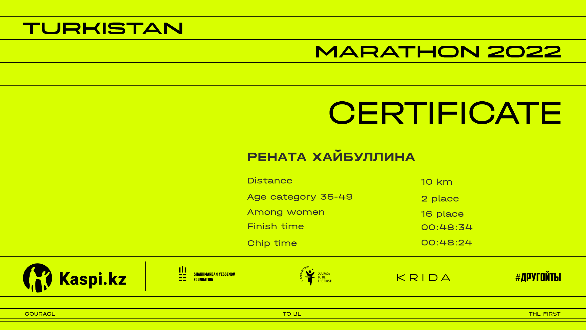 | 114 | Рената Хайбуллина | ![]() | Алматы | 1362 | 00:24:12.95 | 00:48:34.66 | 00:48:24.28 | Download |