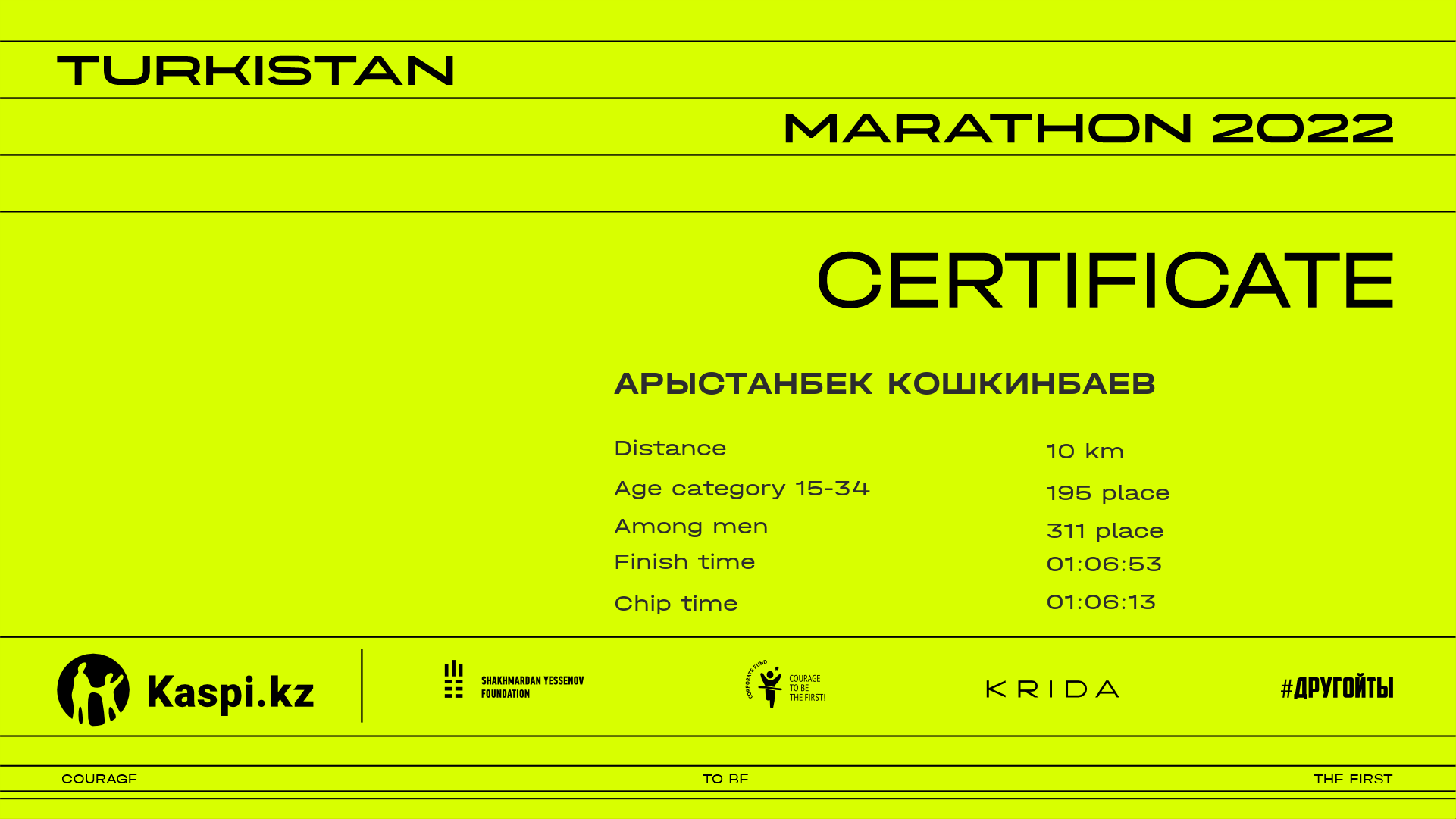 | 473 | Арыстанбек Кошкинбаев | ![]() | Туркестан | 1990 | 00:33:21.29 | 01:06:53.51 | 01:06:13.29 | Download |