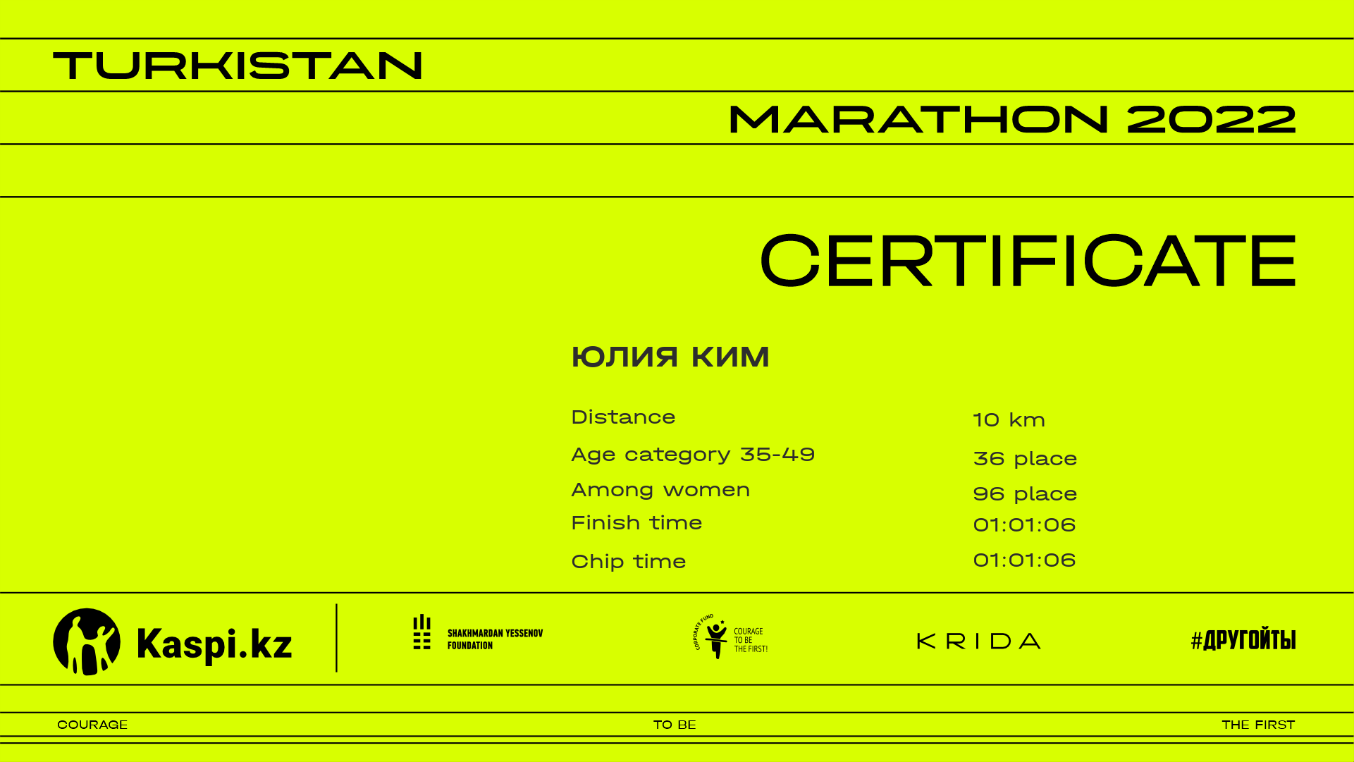 | 594 | Ербол Амирханов | ![]() | Талгар, Алматинская область | 850 | 00:35:33.73 | 01:13:11.76 | 01:12:56.29 | Download |