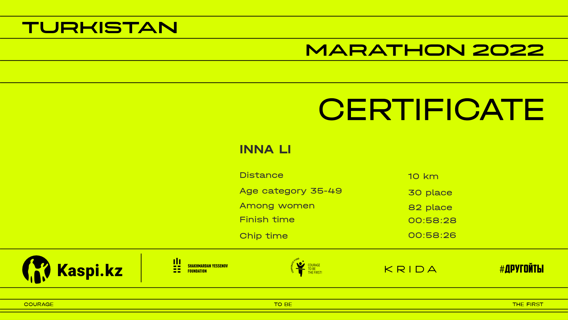 | 675 | Kainiya Tlekenova | ![]() | Алматы | 1441 | 00:40:21.67 | 01:20:58.61 | 01:20:22.88 | Download |