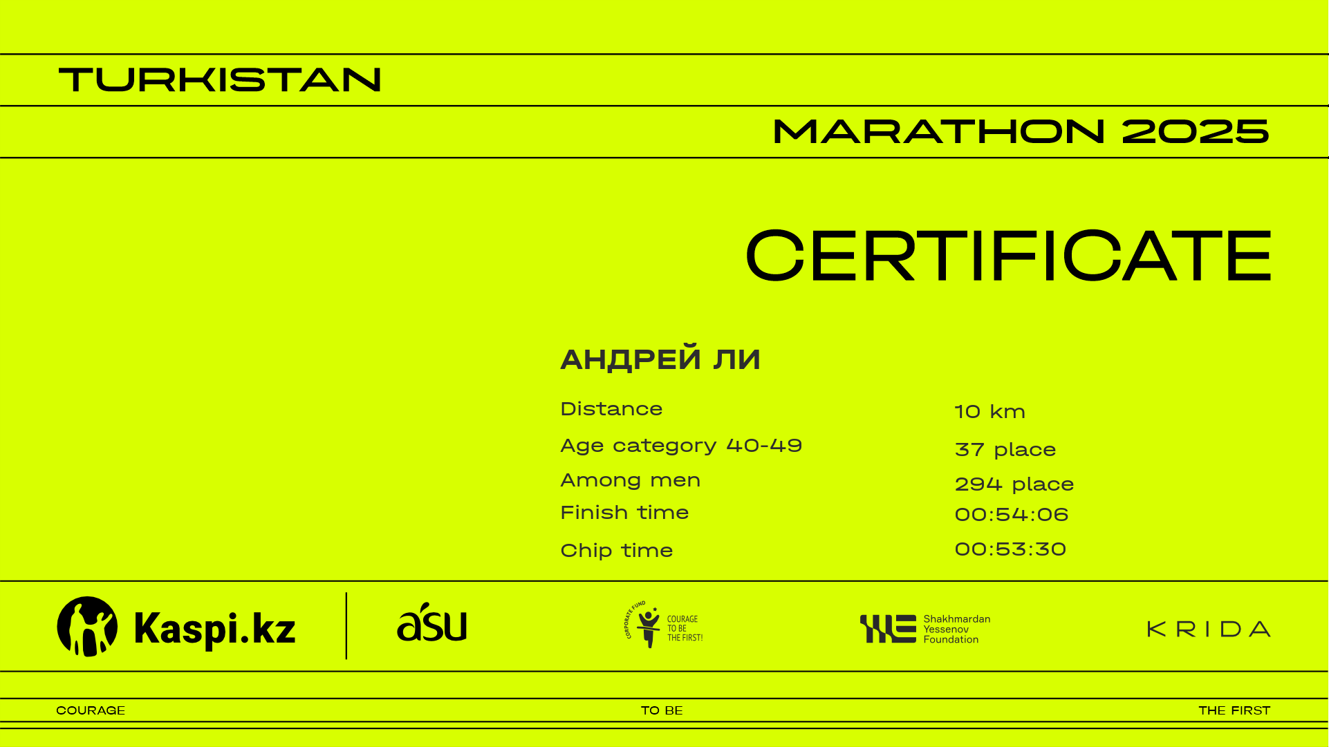| 390 | ADILBEK KONYSBEKOV | ![]() | Шымкент | 2271 | 00:34:15 | 00:54:54 | 00:54:52 | Download |