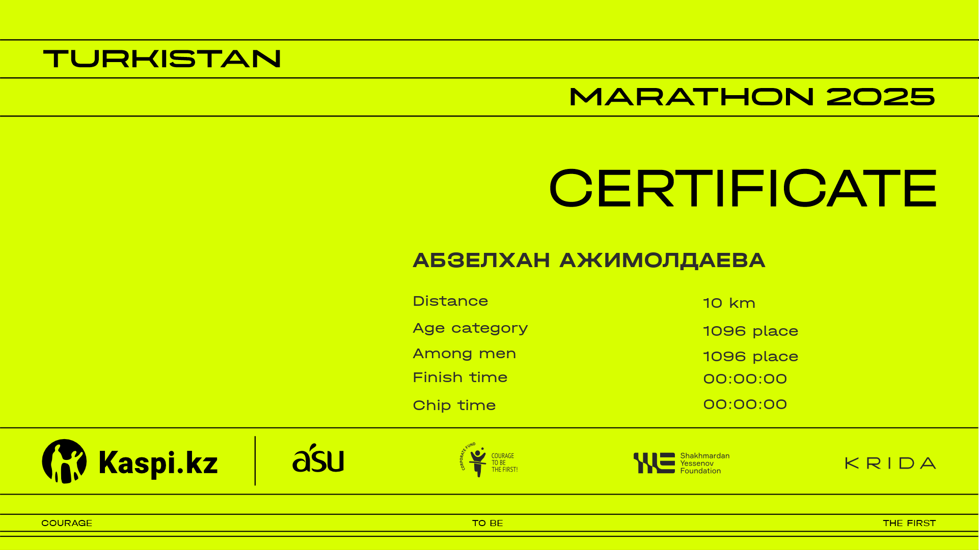 | 1158 | Aidana Tulkibek | ![]() | Шымкент | 2789 | 02:22:37 | 04:07:12 | 04:07:12 | Download |