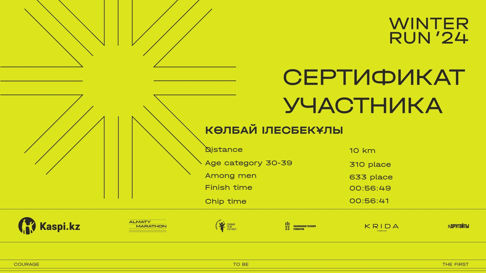 | 768 | Адиль Бестембеков | ![]() | Алматы | 2204 | 00:08:23 | 00:29:08 | 00:47:49 | 00:56:42 | 00:56:17 | Download |