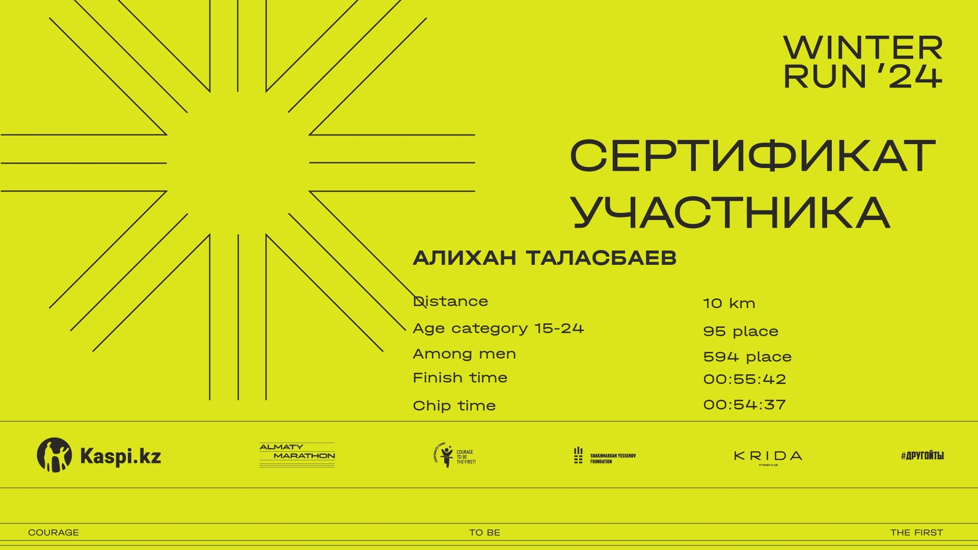 | 1332 | Алтынбек Камалов | ![]() | Алматы | 112 | 00:10:43 | 00:35:00 | 00:58:02 | 01:08:17 | 01:07:32 | Download |