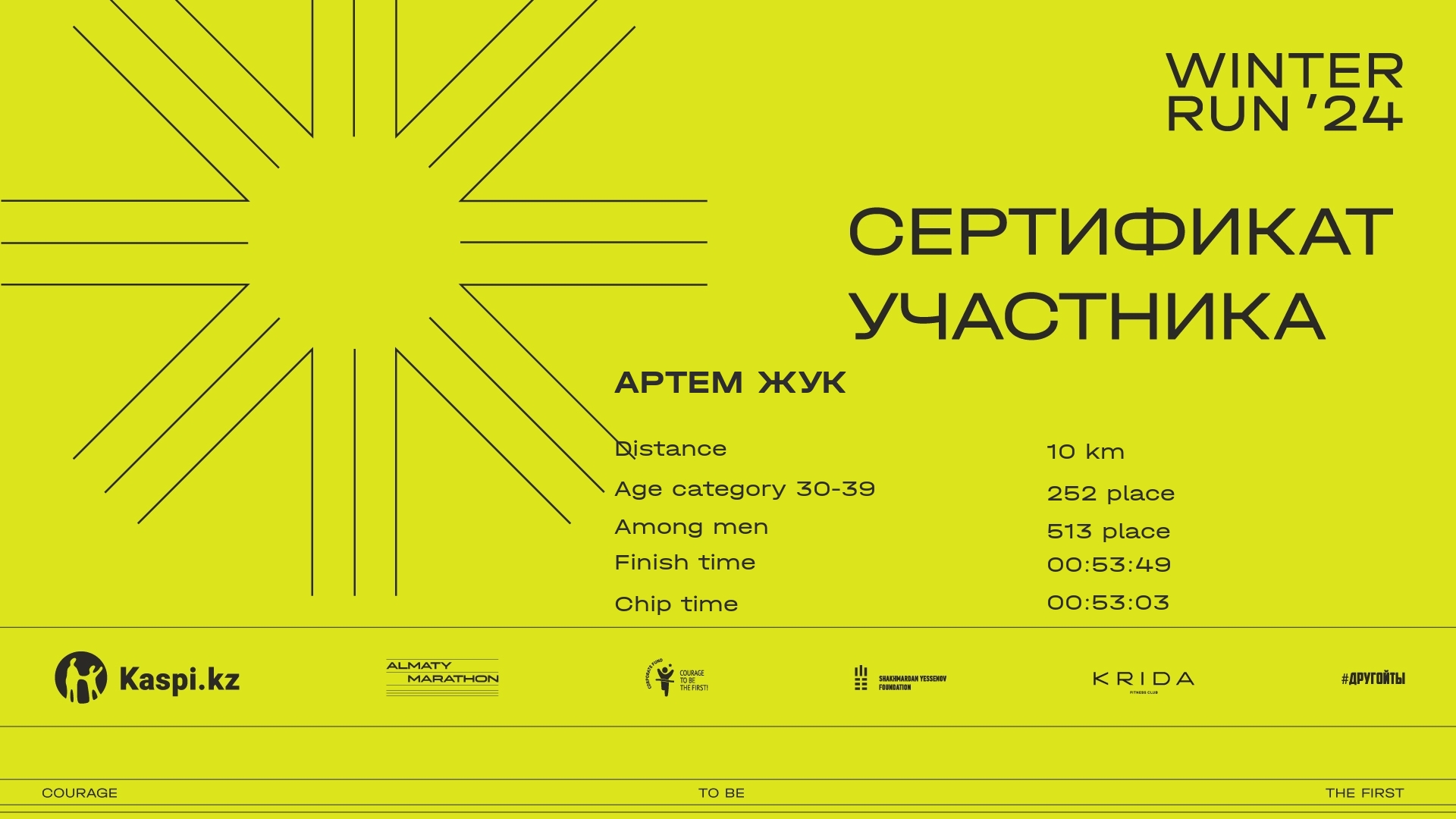 | 1080 | Бауыржан Тлеубердиев | ![]() | Алматы | 1562 | 00:08:40 | 00:31:08 | 00:52:00 | 01:02:29 | 01:01:48 | Download |