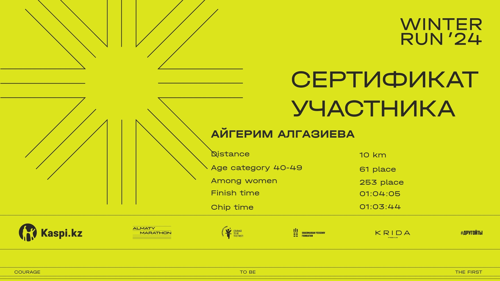 | 1731 | Оксана Стручалина | ![]() | Алматы | 1859 | 00:12:10 | 00:43:44 | 01:12:09 | 01:25:46 | 01:24:24 | Download |