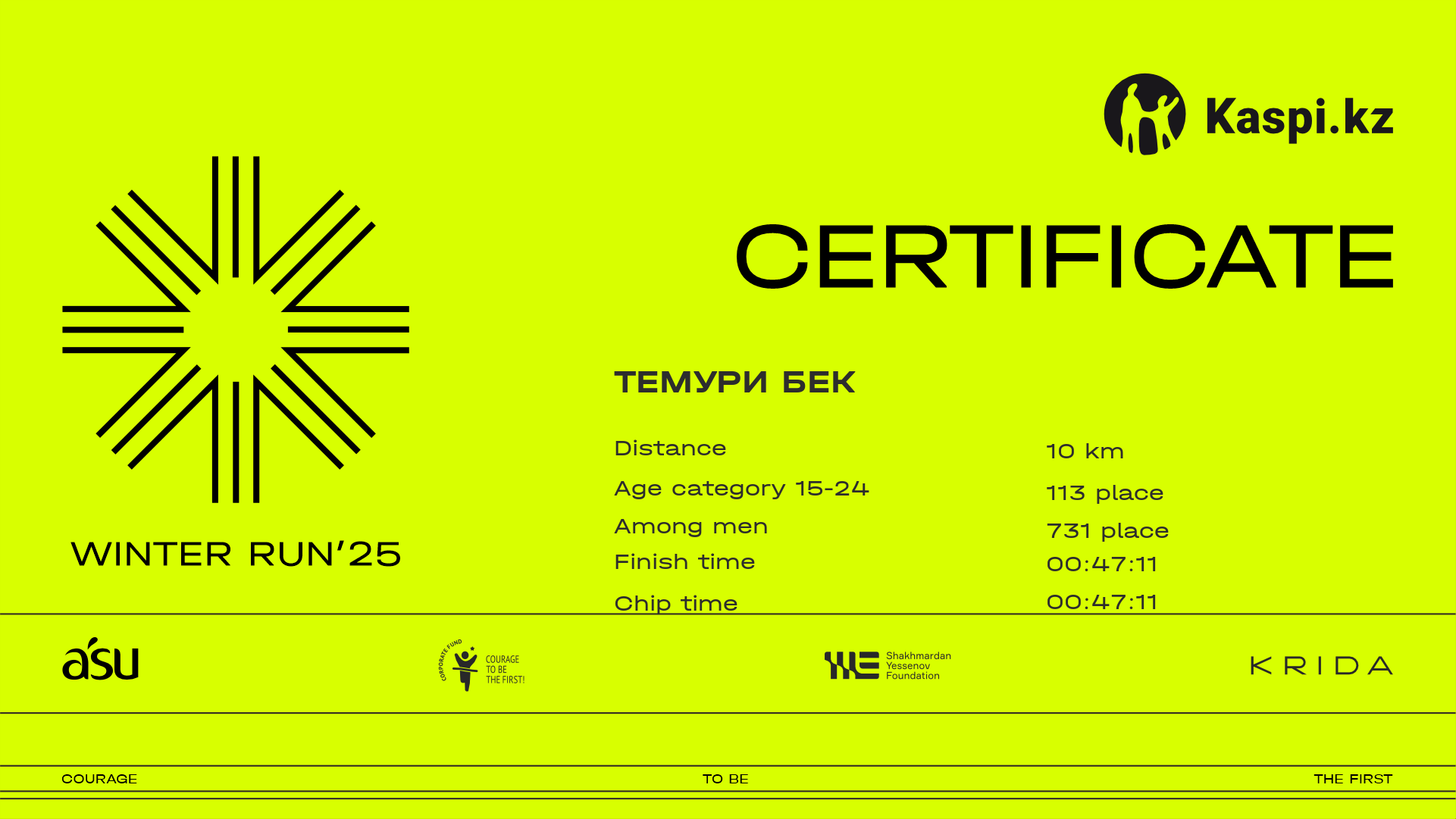 | 431 | Тимур Агубаев | ![]() | Алматы | 240 | 00:22:19 | 00:38:57 | 00:52:47 | 00:52:24 | Download |