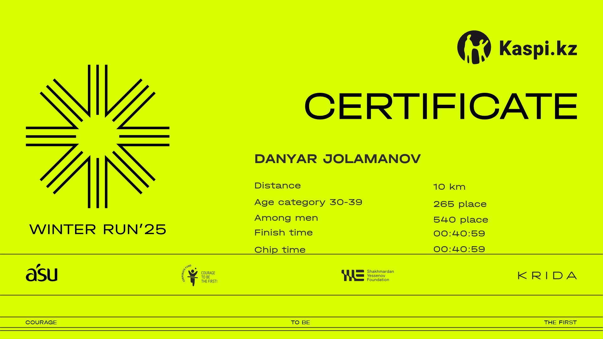 | 691 | Danyar Jolamanov | ![]() | Алматы | 676 | 00:22:38 | 00:40:59 | 00:57:54 | 00:57:45 | Download |