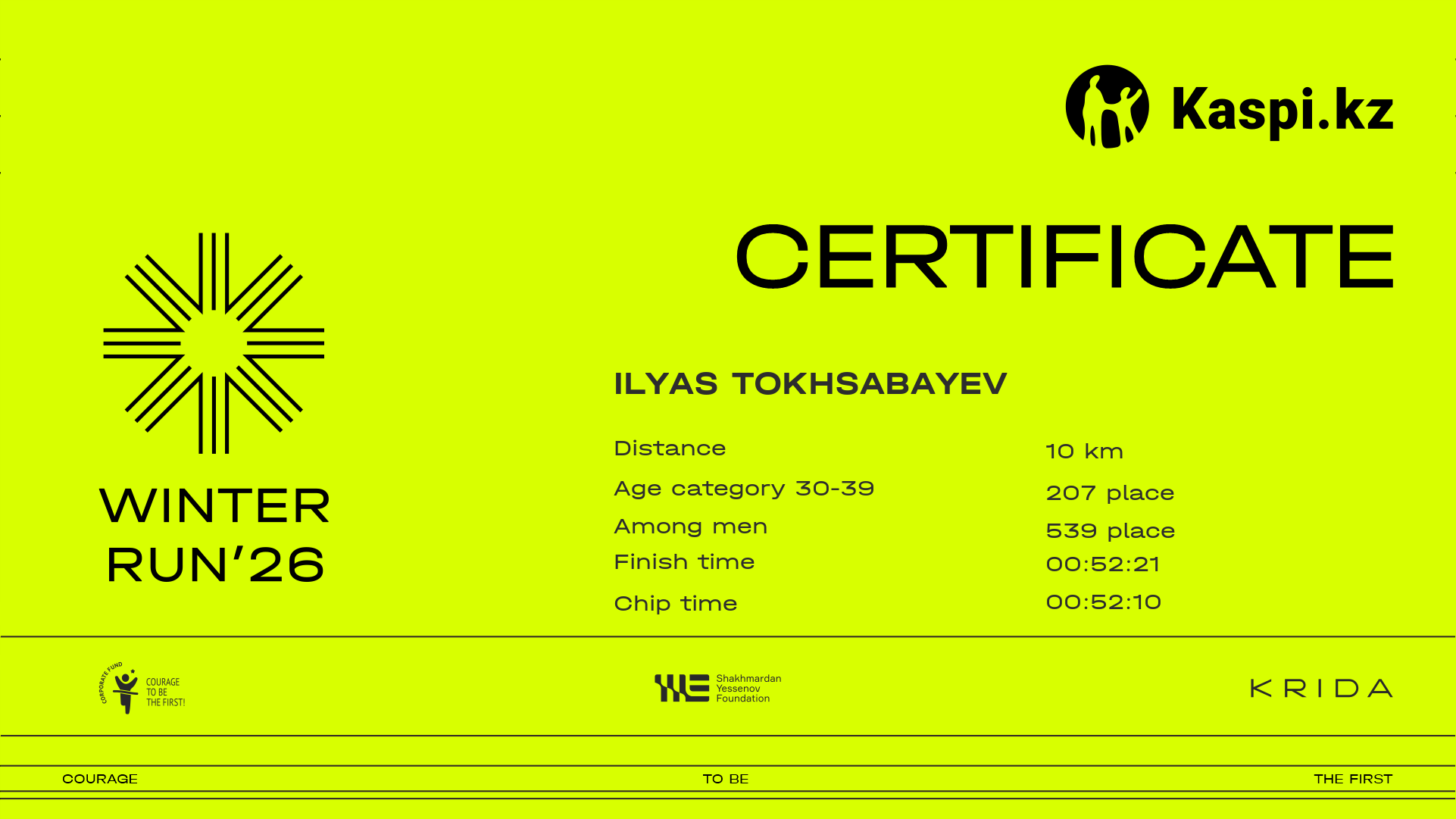 | 550 | KAIRAT YERNIYAZOV | ![]() | Алматы | 230 | 00:07:21.96 | 00:25:58.48 | 00:42:47.87 | 00:50:58.52 | 00:50:00.88 | Download |