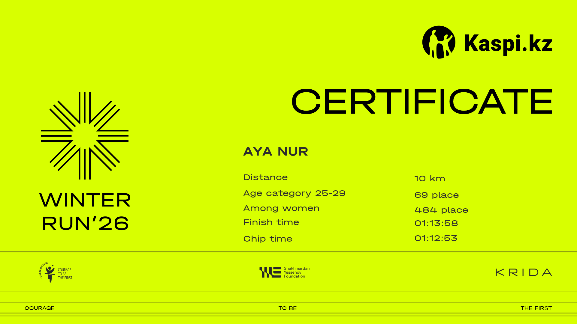 | 1359 | Assel Kulybekova | ![]() | Almaty | 1863 | 00:11:12.31 | 00:34:58.72 | 00:55:08.01 | 01:04:53.18 | 01:03:12.09 | Download |