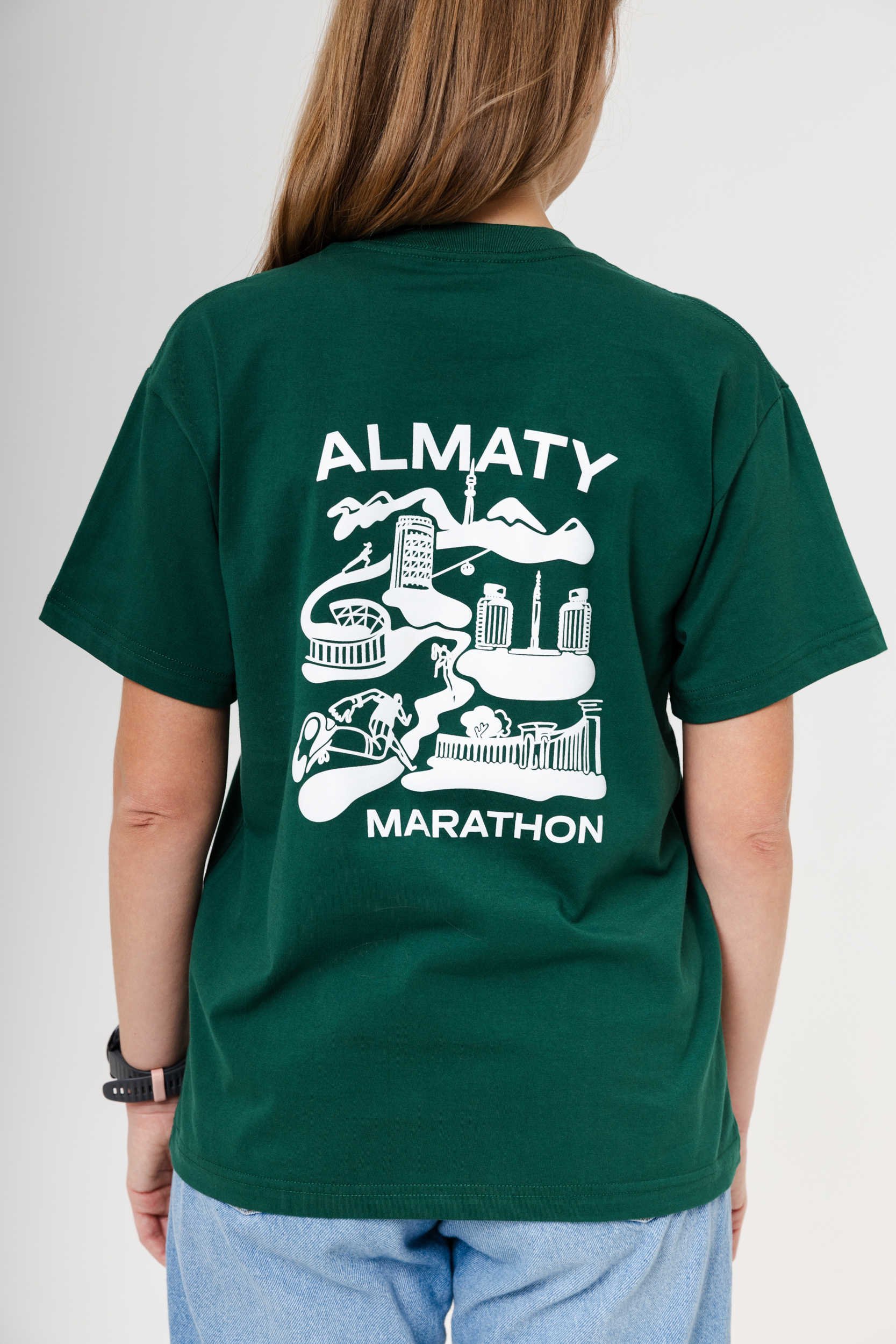 Stylish and comfortable t-shirt made of natural cotton is an ideal choice for everyday wear and an active lifestyle. The model is designed in classic white and features an original Almaty Marathon print on the back, inspired by the city and running culture.