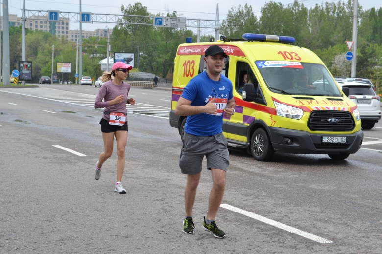 Жарыс басталған күні жүгірушілердің хал-ауқатын және қауіпсіздігін жедел медициналық көмек станциясының бригадалары мен веломедиктері қамтамасыз етеді. Трасса бойы кардиологиялық орталық қызметкерлері бар медициналық палаталар орнатылатын болады. Сонымен бірге Алматы жартылай марафонына Қазақстандағы Қызыл Жарты Ай қоғамында алғашқы дәрігерге дейінгі көмек көрсету негіздерін көрсетуге үйретілген 50-ден аса еріктілер қатысады. Трассаның әрбір шақырымында Қызыл Жарты Ай қоғамының еріктілері мен оқытудан өткен студент еріктілері кезекшілікті атқаратын болады.